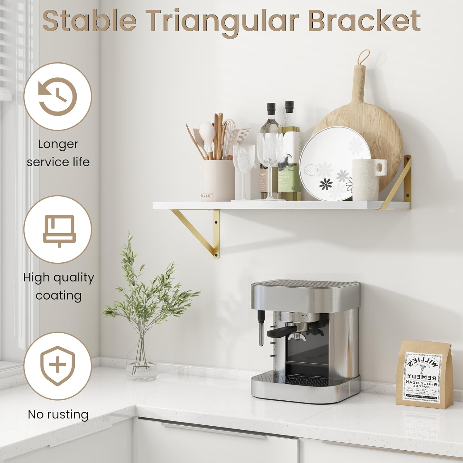 Dreamland Gold Shelves for Wall, White Wood Wall Mounted Shelves, Large Floating Shelf 12 * 24 inch Set of 2 for Bookshelf Living Room Bedroom Home Office Bathroom