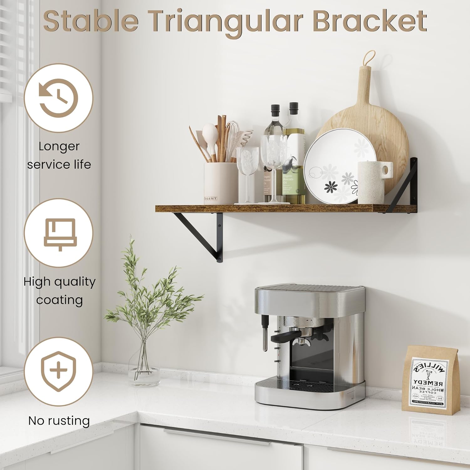 - Wall Decor and Storage: These classic and practical brown floating shelves are the perfect solution to transform blank, uninspiring walls into stylish, functional displays. Showcase your favorite books, collectibles, artwork, and more with ease, adding both character and organization to any room.