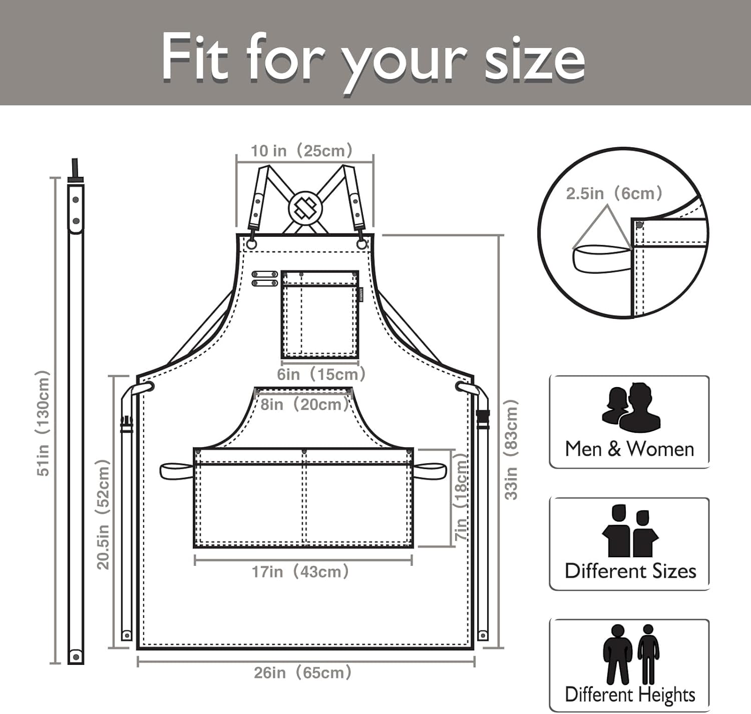 - Fashionable and Professional Protection: This canvas apron is designed to be stylish and provide professional protection, providing good coverage and protection from the chest to the knees, preventing grease , sawdust and dirt from dirtying clothes
