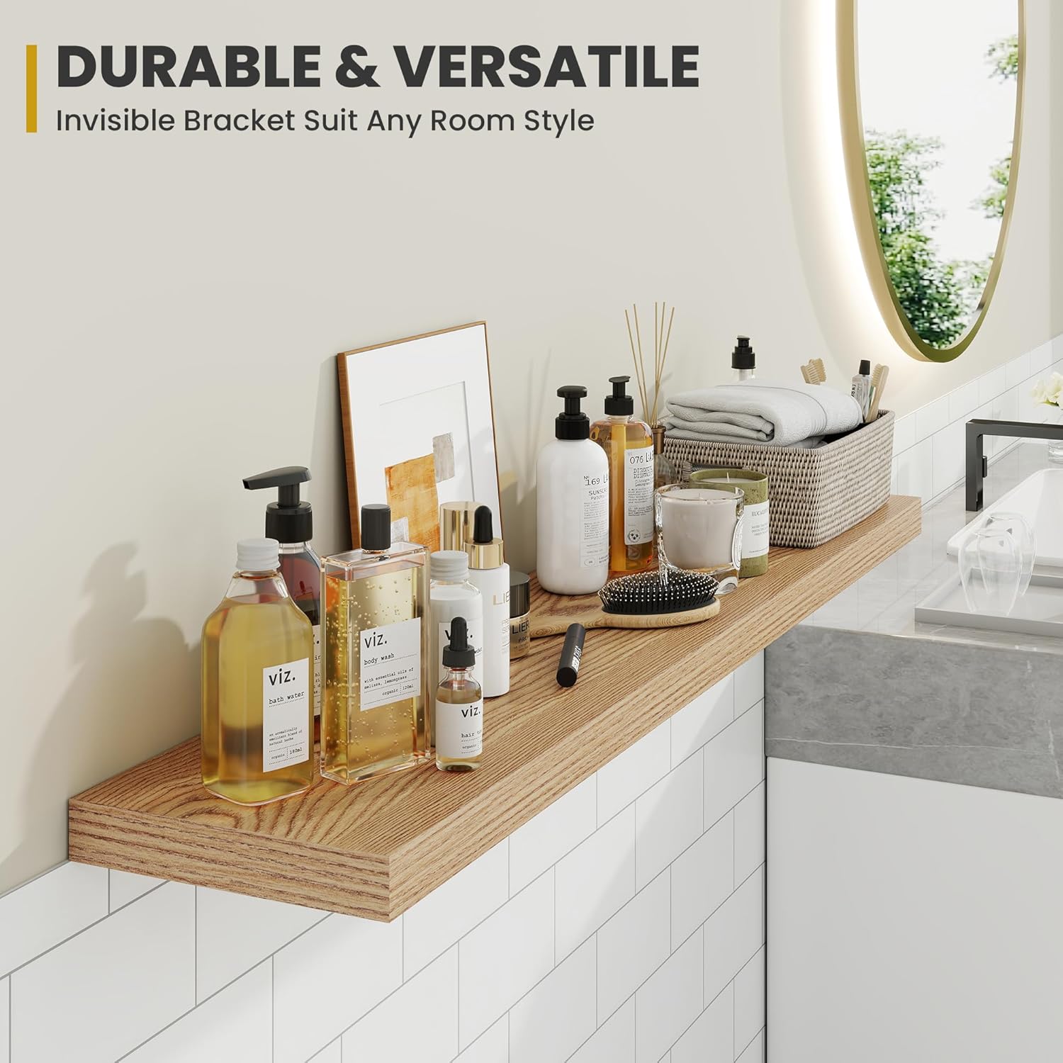 - [ROBUST & SECURE MOUNTING]: Equipped with a sturdy, hidden mounting bracket, these 48-inch floating shelves ensure solid support for your items. Designed for easy and secure installation, they come with all necessary hardware for a firm, wobble-free setup, allowing you to confidently display decor, photos, or functional items with style.