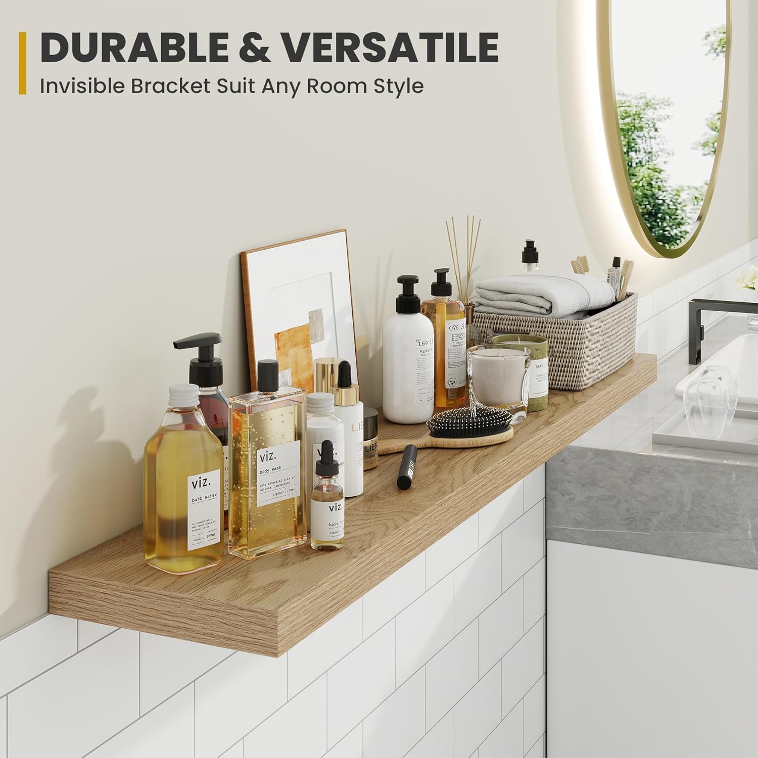 - [QUICK INSTALLATION WITH DETAILED GUIDES]: Our floating shelves include all mounting hardware and a comprehensive guide, enabling quick setup in under 10 minutes. Follow the step-by-step instructions to enjoy these beautiful shelves effortlessly, instantly upgrading your living space.