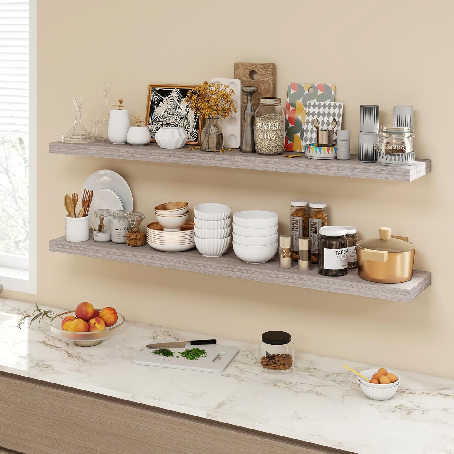- [QUICK INSTALLATION WITH DETAILED GUIDES]: Our floating shelves include all mounting hardware and a comprehensive guide, enabling quick setup in under 10 minutes. Follow the step-by-step instructions to enjoy these beautiful shelves effortlessly, instantly upgrading your living space.