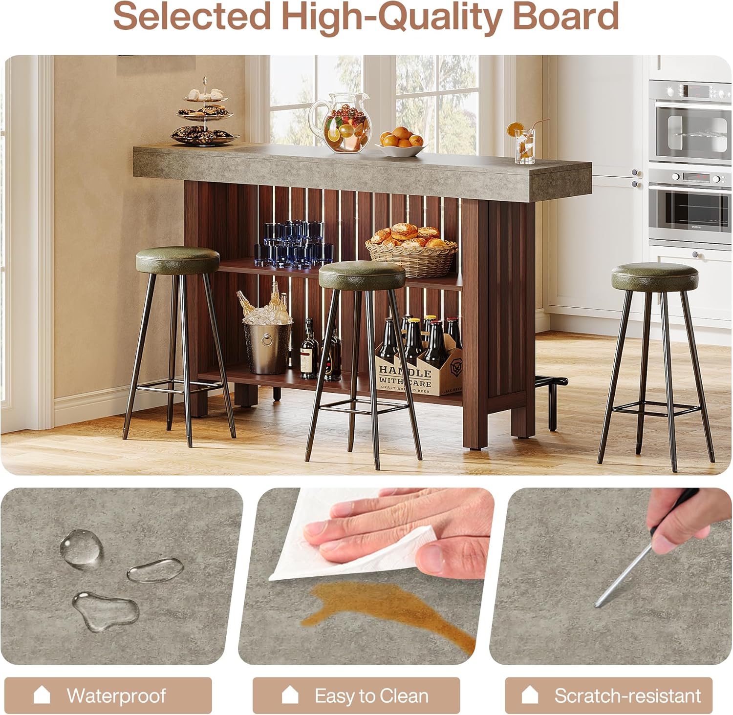- Sturdy and Strong Build: Exuding quality and longevity, this home bar table is expertly crafted using 3.97" thickened panels and a robust frame, while the sturdy footrest is furnished with adjustable foot pads for additional stability. The open-shelf approach adds an aesthetic appeal while ensuring that your items are kept securely, thanks to the side guardrails to prevent accidental falls.