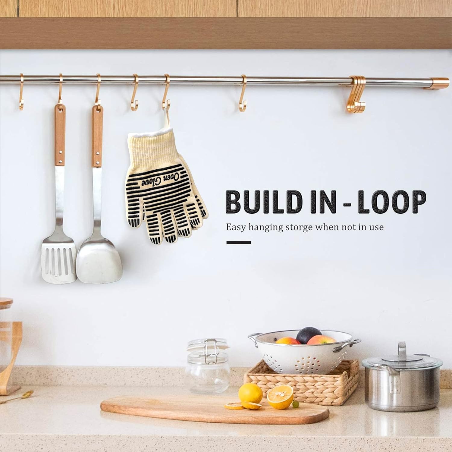 - EASY TO CLEAN & STORE: Our grilling gloves are suitable for machine washing and hand washing without affecting their thermal insulation effect. Feature with hook design which makes it easy for you to store anywhere.