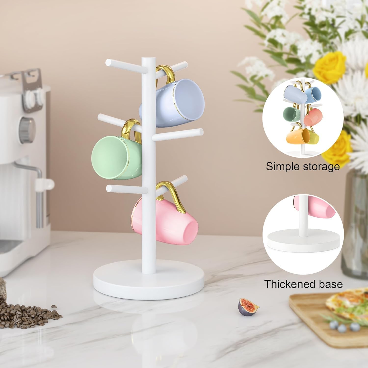 Wisuce Black Coffee Mug Tree Bamboo Mug Holder Coffee Cup Stand Mug Holders for Countertop Coffee Mug Rack Organizer Stand (White)