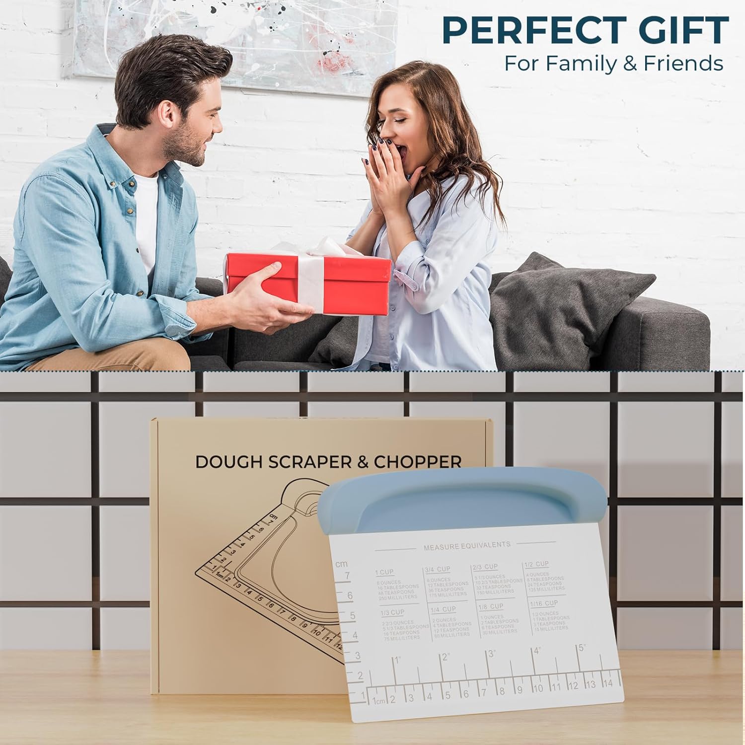 - ✔ [𝗣𝗥𝗔𝗖𝗧𝗜𝗖𝗔𝗟 𝗗𝗘𝗦𝗜𝗚𝗡] Dough scraper for baking is designed with measurement markings and conversion chart which use advanced laser-engraved technology for easily measuring