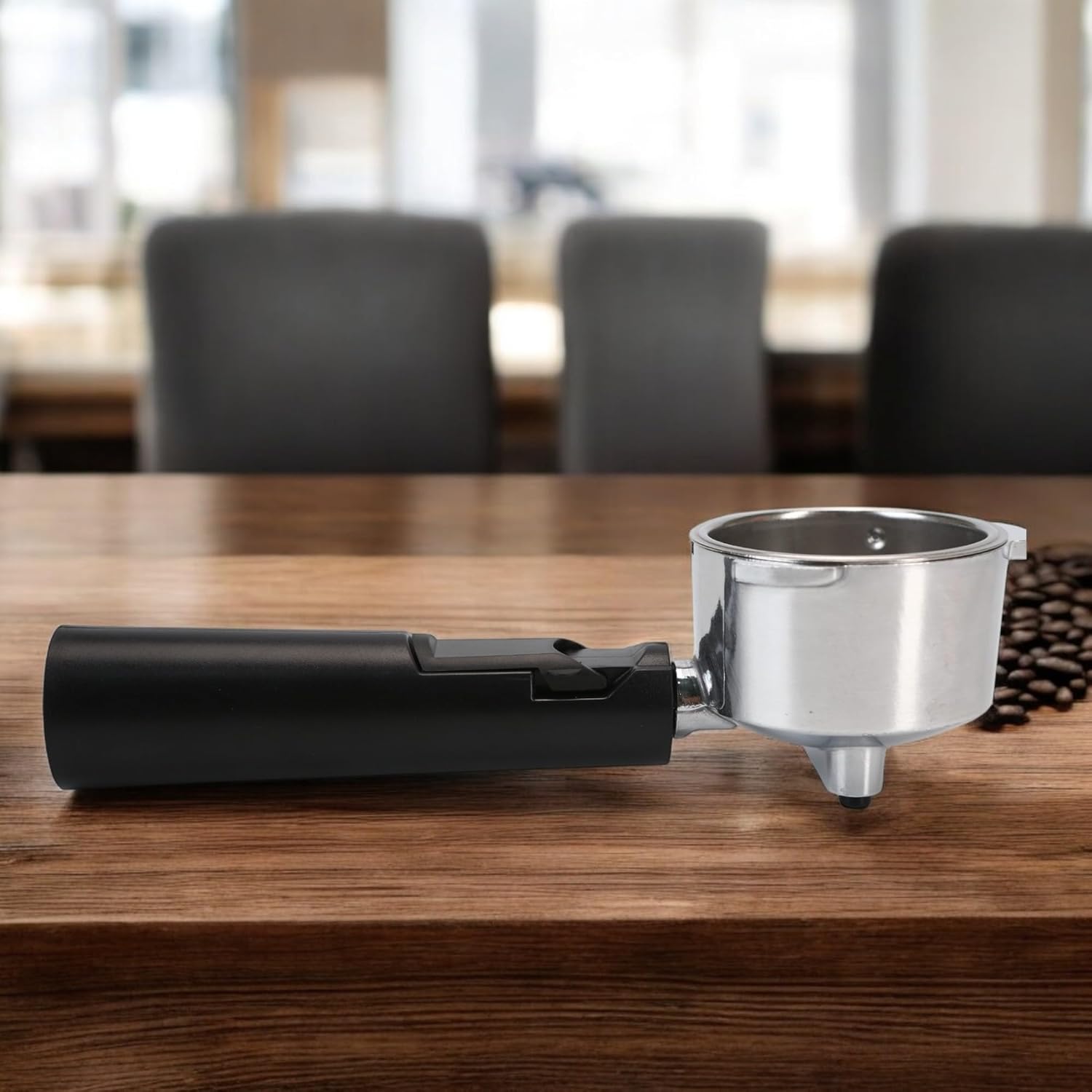 - The ergonomic design of the coffee handle provides a comfortable grip, and its lightweight build reduces wrist strain during extraction. Crafted with a plastic handle and stainless steel head, this portafilter is sturdy, thick, and rust-free, ensuring long-lasting durability.