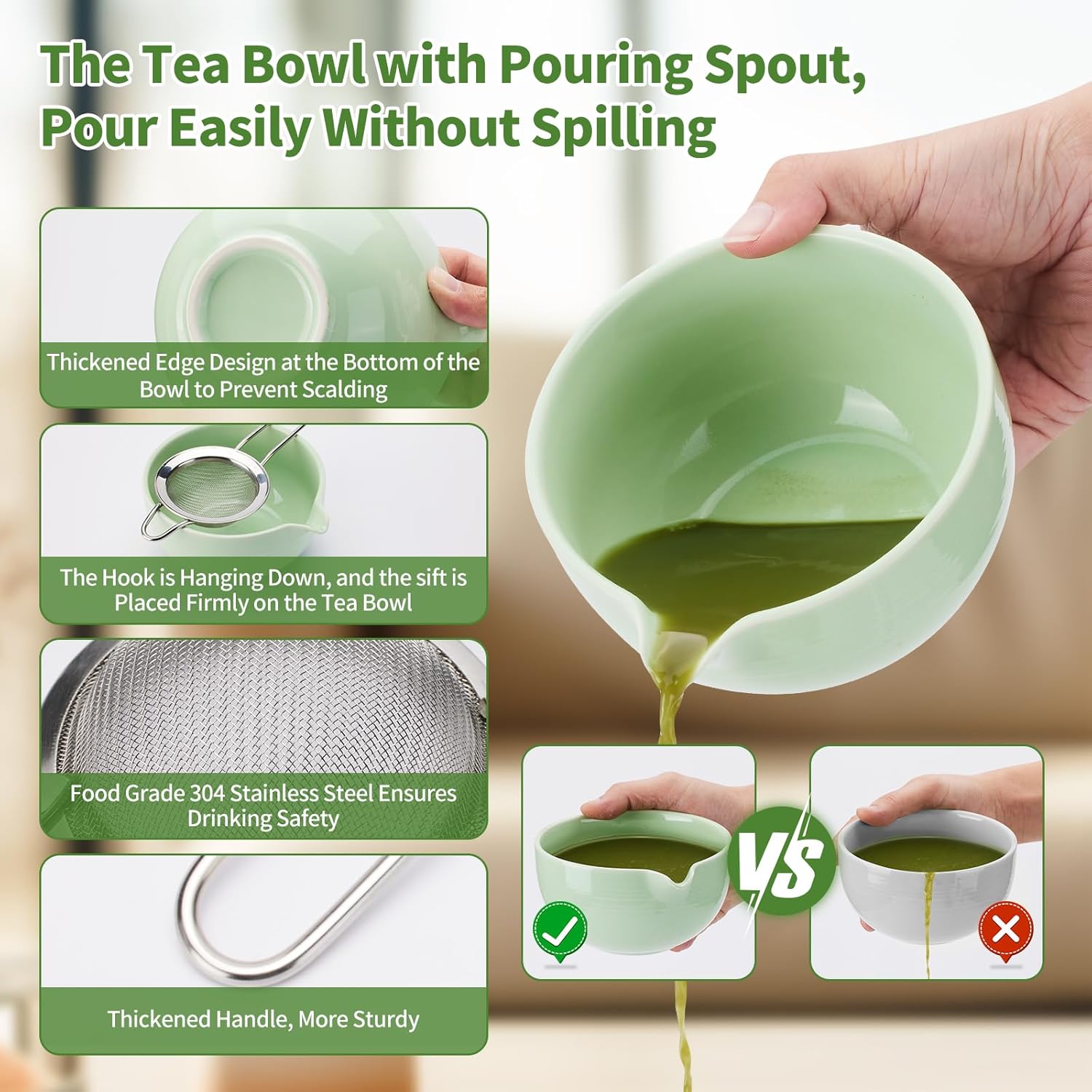 - 【Matcha Tea Lover's Delight】Our matcha tea set can play an integral role in any matcha tea set. It's a perfect companion for your matcha tea drinking. The lead-free matcha bowl has a pouring spout to prevent liquid from spilling, making it more enjoyable for you to enjoy matcha with your family and friends.