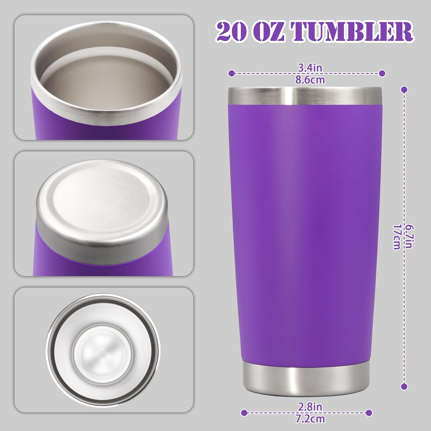 - SIZE & FITS CAR CUPHOLDER - The capacity of the tumbler is 20 oz and the smooth design of the tumbler body makes it suitable for most car cupholders. In addition, the tumbler can also be easily held