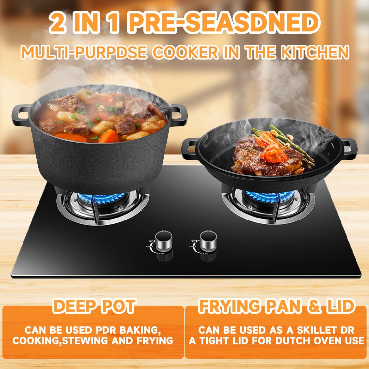 Cast Iron Dutch Oven Bread Baking Kit - 10-Piece Set with Banneton Basket, Dough Scraper, pizza shovel,Bread Lame, Whisk, Brush, and Silicone Grips with Skillet Lid Cooking Pan Handles Lame, 5QT