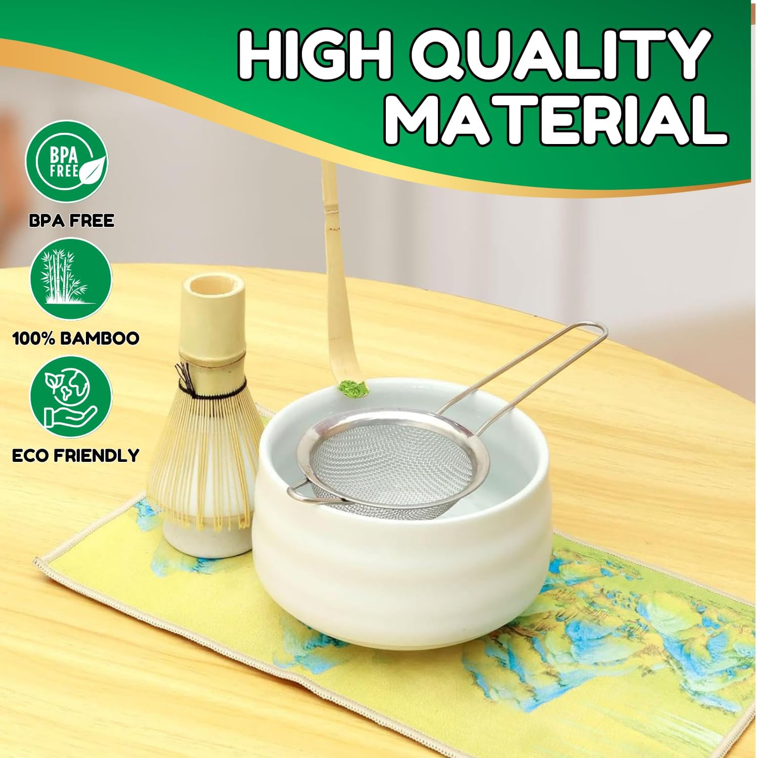 - 𝗠𝗮𝘁𝗰𝗵𝗮 𝗪𝗵𝗶𝘀𝗸 & 𝗕𝗼𝘄𝗹 𝗦𝗲𝘁: The macha whisk set is an essential collection for matcha enthusiasts. This refined matcha bowl set includes a Japanese matcha bowl, a handcrafted bamboo whisk, a classic hooked bamboo scoop , a whisk holder, an ultra-fine stainless steel sifter, and a linen tea towel.