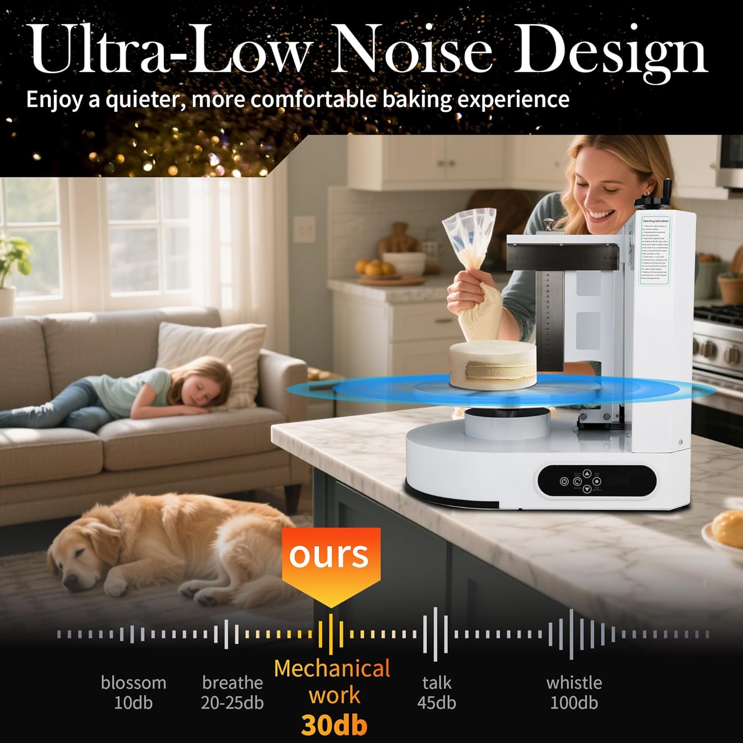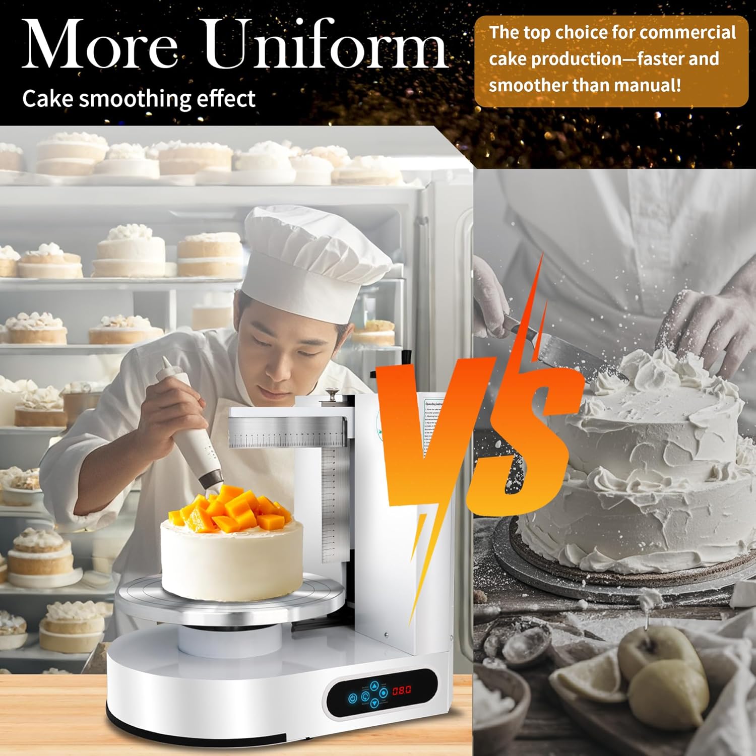 - 【Perfect for All Skill Levels】Whether you’re a beginner or a pro, this cake decorating machine helps you quickly frost cakes of various sizes. It’s the perfect tool for bakeries, DIY cake studios, restaurants, and party venues, making professional-quality results easier than ever.