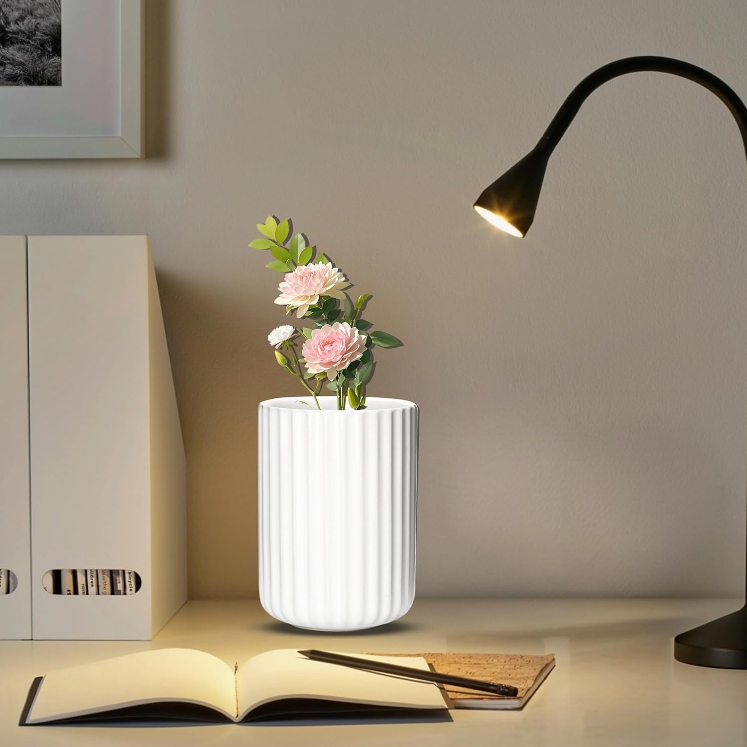 Ceramic Spoon Holder for Coffee Bar, Upright Tea Spoon Holder Cup, Coffee Stirrers Straws Stir Stick Holder, Fish Belly White Fluted Surface