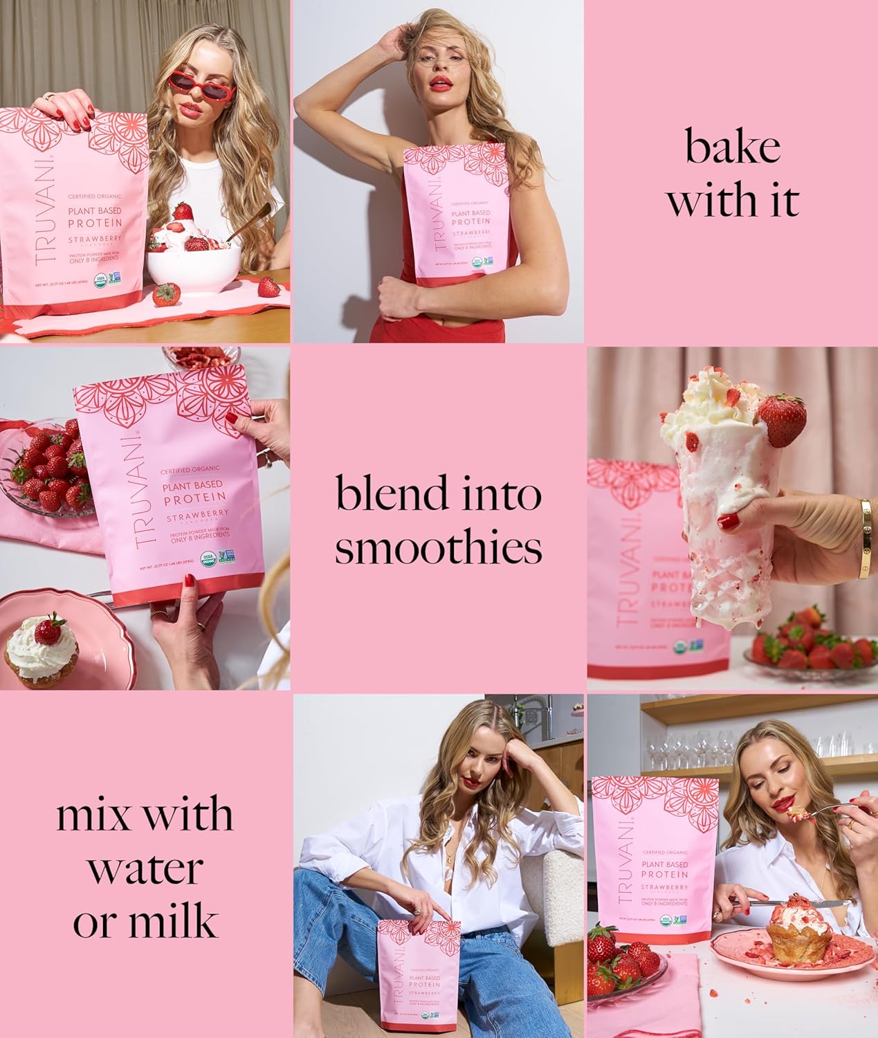 Truvani Vegan Pea Protein Powder | Strawberry | 20g Organic Plant Based Protein | 20 Servings | Keto | Gluten & Dairy Free | Low Carb | No Added Sugar