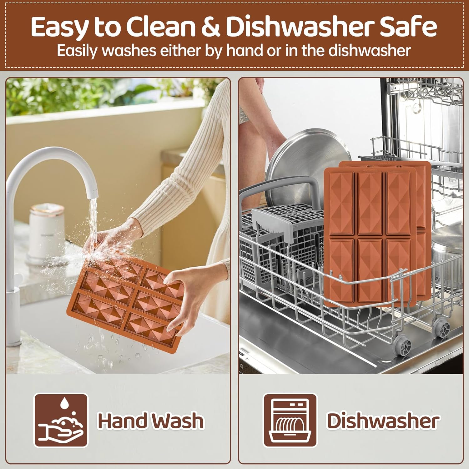 - Mini Chocolate Bar Mold Easy To Demold And Clean:Chocolate molds with premium nonstick surface, our large silicone molds are easy to demold with good detailed shape. It's dishwasher safe, freezer safe, oven safe and microwave safe, heat resistant from -40 ℉ to +446 ℉