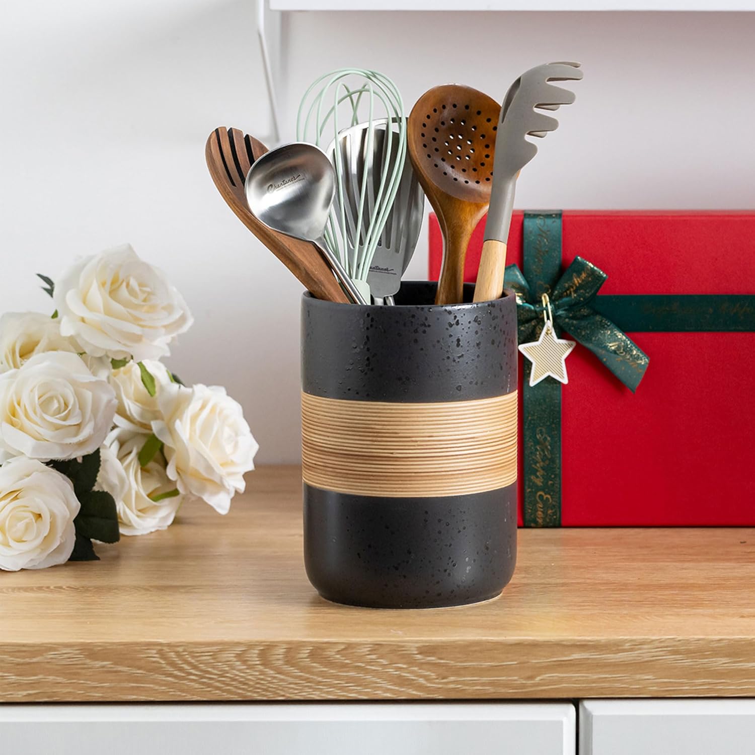 Coffee Container Jar with Lid, Ceramic Kitchen Food Storage Jars for Spice Sugar Cookie, Stackable Decorative Jars for Coffee Bar, Black & 28oz