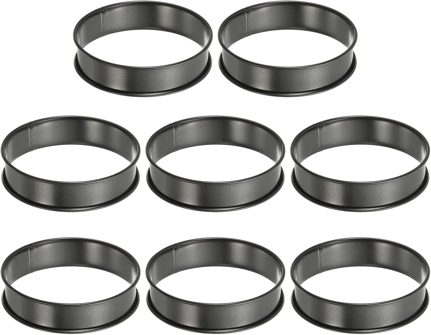 HARFINGTON 8pcs Crumpet Rings 3.94" Nonstick Round Cake Ring Stainless Steel Double Rolled English Pastry Rings for Kitchen Baking Crumpet Dessert, Black
