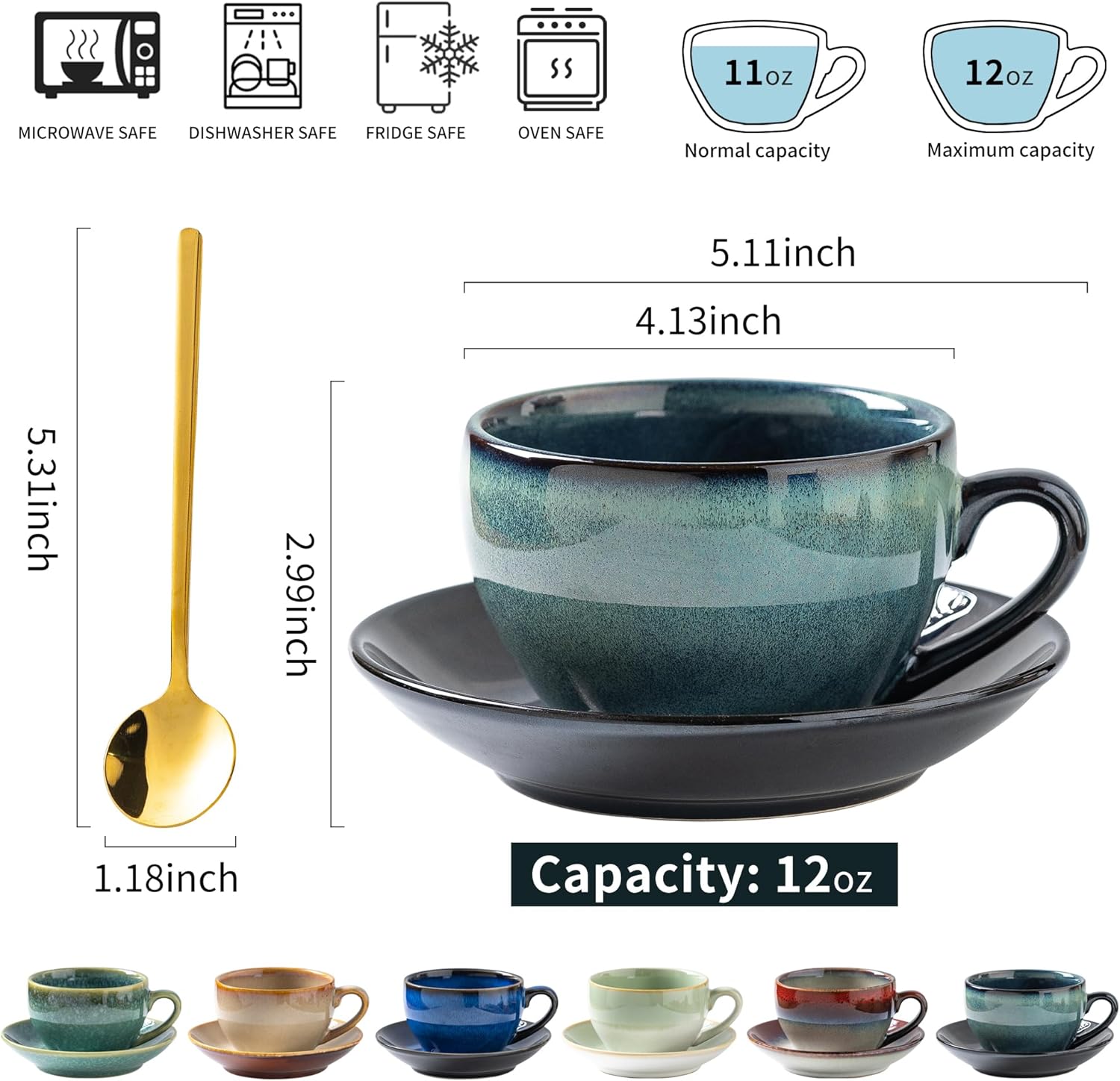 - The package includes cup + saucer + coffee spoon(Starry Blue). The cup's full capcity torRim 11 oz for latte art use or tea. Professional cup shape serves latte art/cappuccino/Americano.