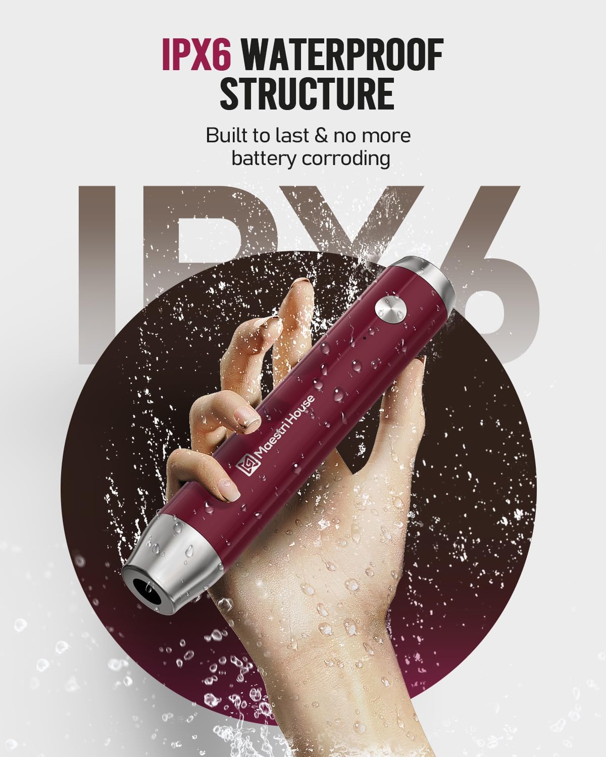 Maestri House Rechargeable Milk Frother, Adjustable 2-Speed Handheld Electric Foam Maker Waterproof Detachable Stainless Steel Whisk Drink Mixer Foamer for Lattes, Cappuccino, No Stand