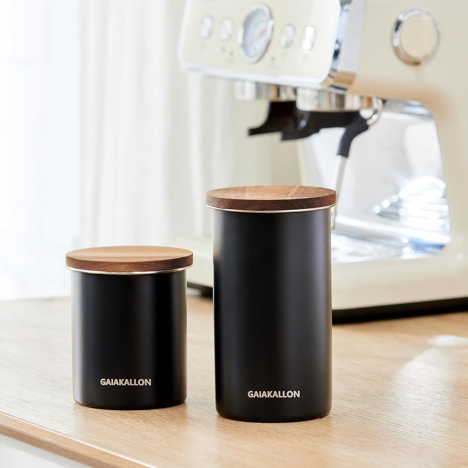 - Premium Materials: The body of our coffee container is made of food-grade 304 stainless steel, and the vacuum cover is made of walnut. All airtight coffee canisters are food-grade materials, and can also be used as decoration in the kitchen or bar.