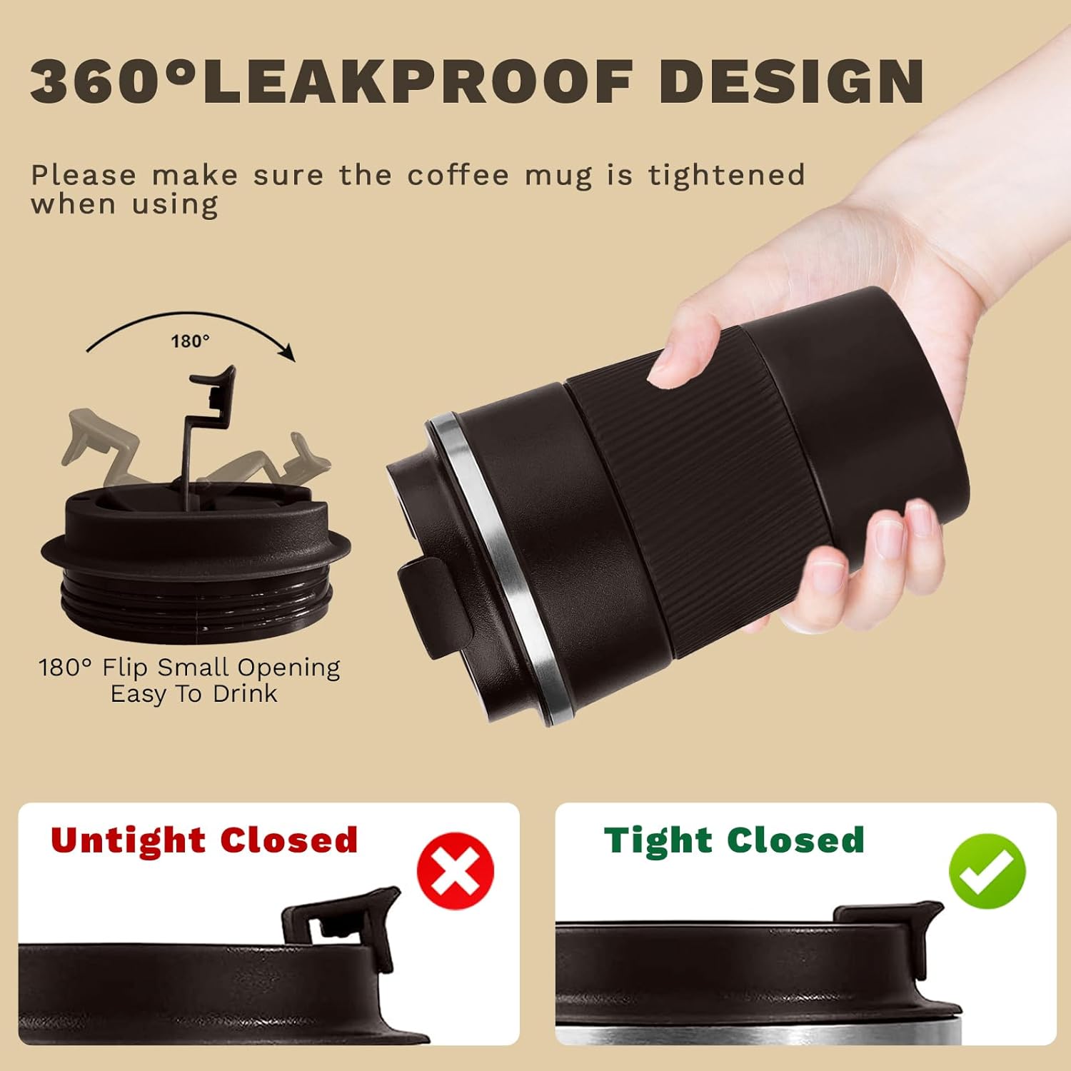 Vacuum-Insulated Stainless Steel Travel Coffee Mug, Leak-Proof Reusable Coffee Cup with Lid - Keep Hot & Cold Drinks for Hours, Durable Thermos Tumbler for Men & Women (3rd-Dark Coffee, 12OZ)