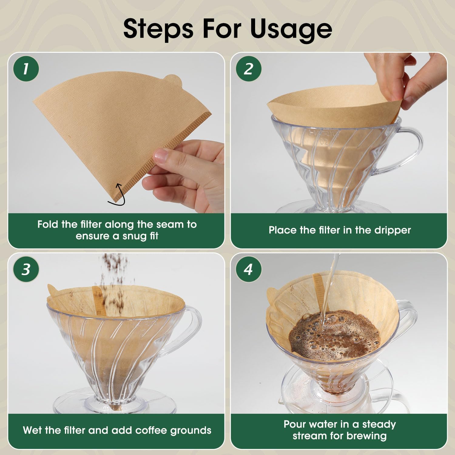 - Pure Coffee Flavor – Made from 100% unbleached virgin wood pulp, our coffee filters are no chlorine, no additives for a clean, chemical-free brew that preserves coffee’s original taste