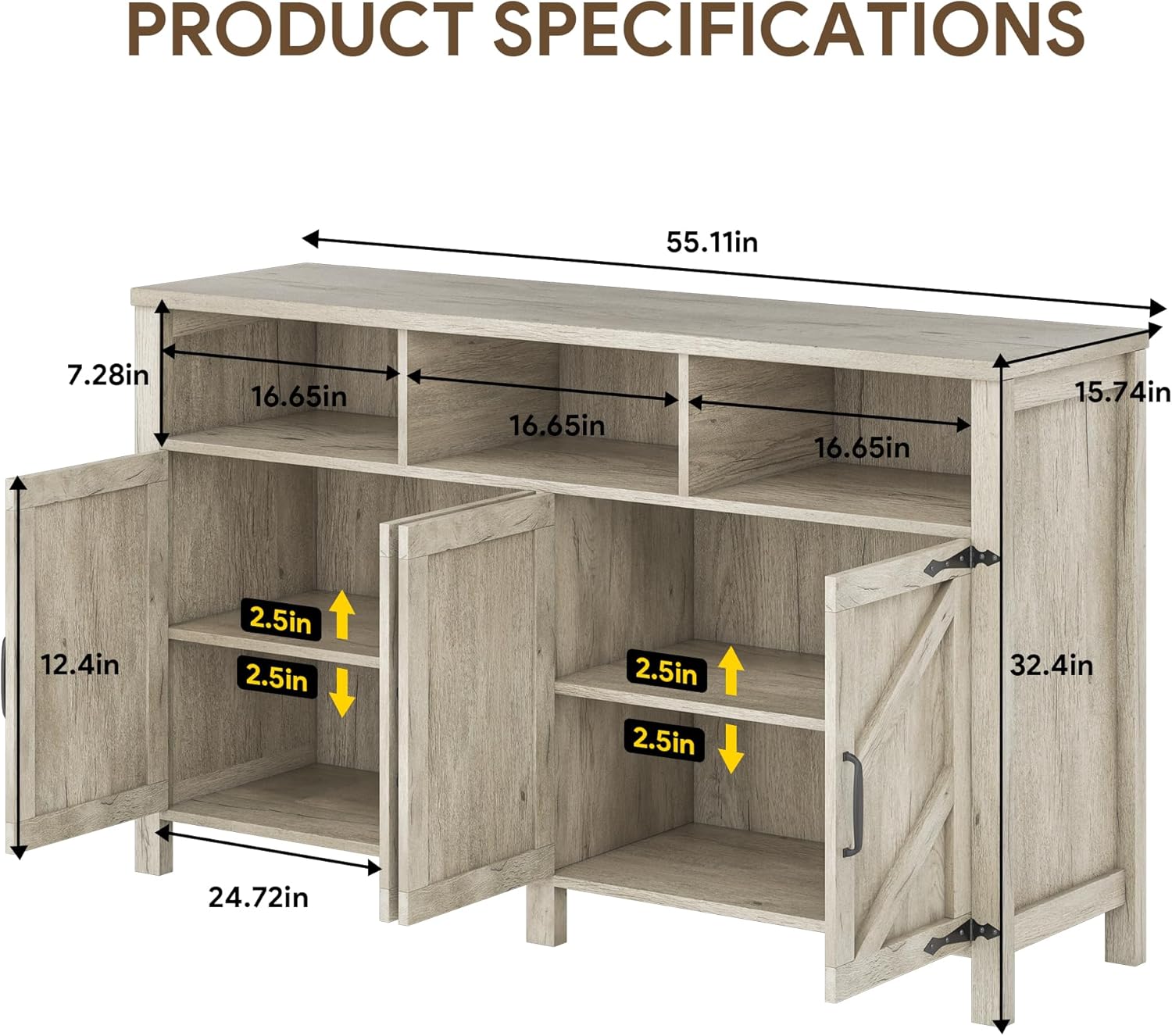 Buffet Cabinet with Storage Farmhouse with 4 Doors, 55'' Large Kitchen Storage Cabinet Wood Coffee Bar Buffet Sideboard for Kitchen, Dining Room, Entryway