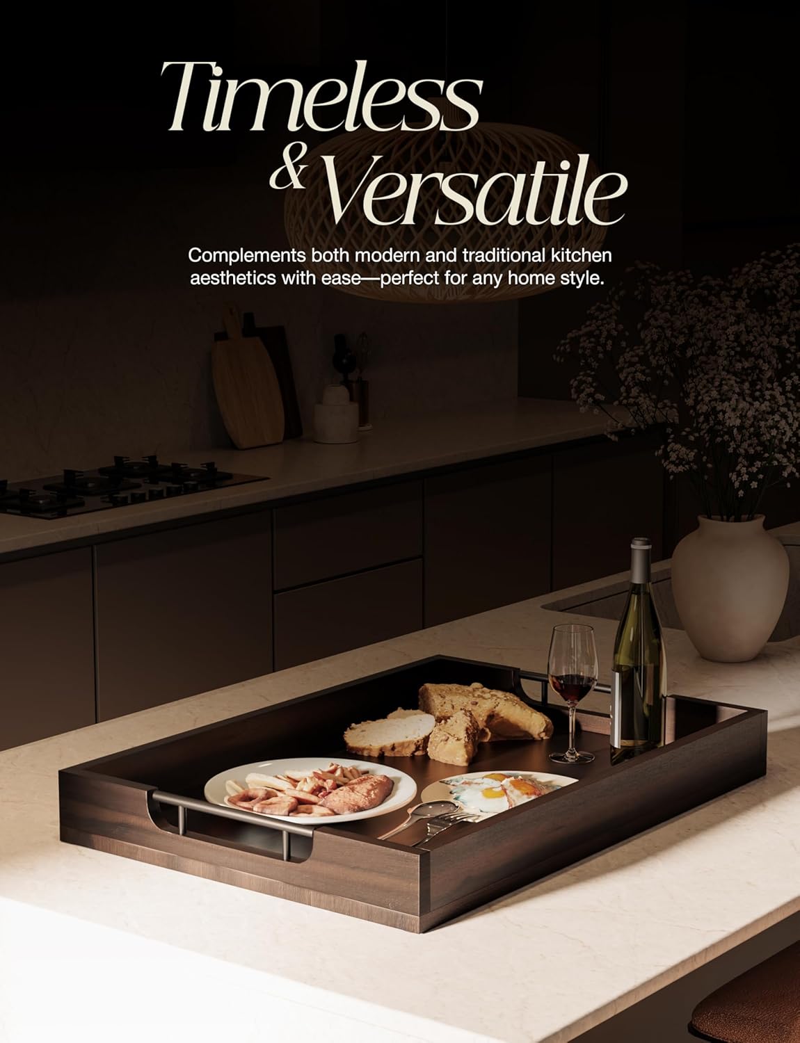 - Lightweight, Portable & Stylish: This wooden tray is surprisingly lightweight. Black metal handles add a modern contrast and ensure a secure grip when carrying from kitchen to patio, or bedroom to living room