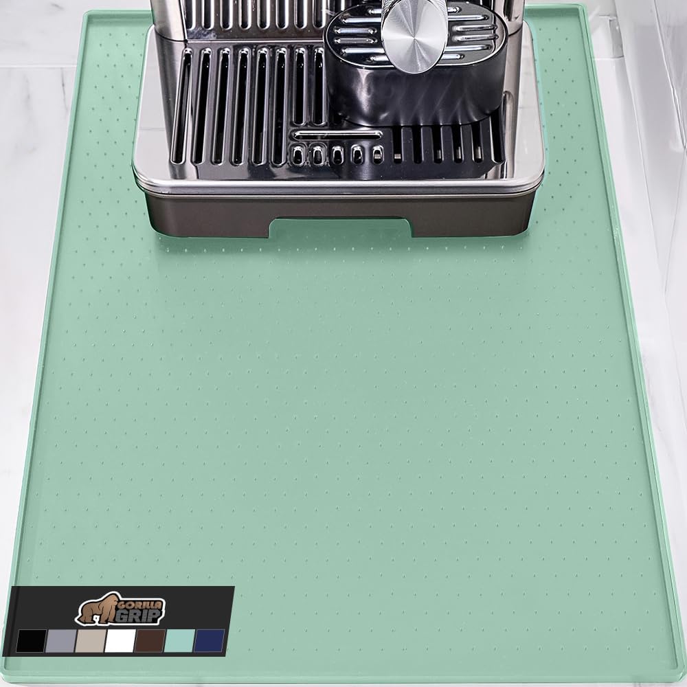 GORILLA GRIP Silicone Coffee Mat, 18x28, Espresso Drink Bar Station Accessories, Waterproof Heat-Resistant Dish Drying Mats, Stay in Place on Kitchen Counter, Home Kitchen Décor Essentials, Mint