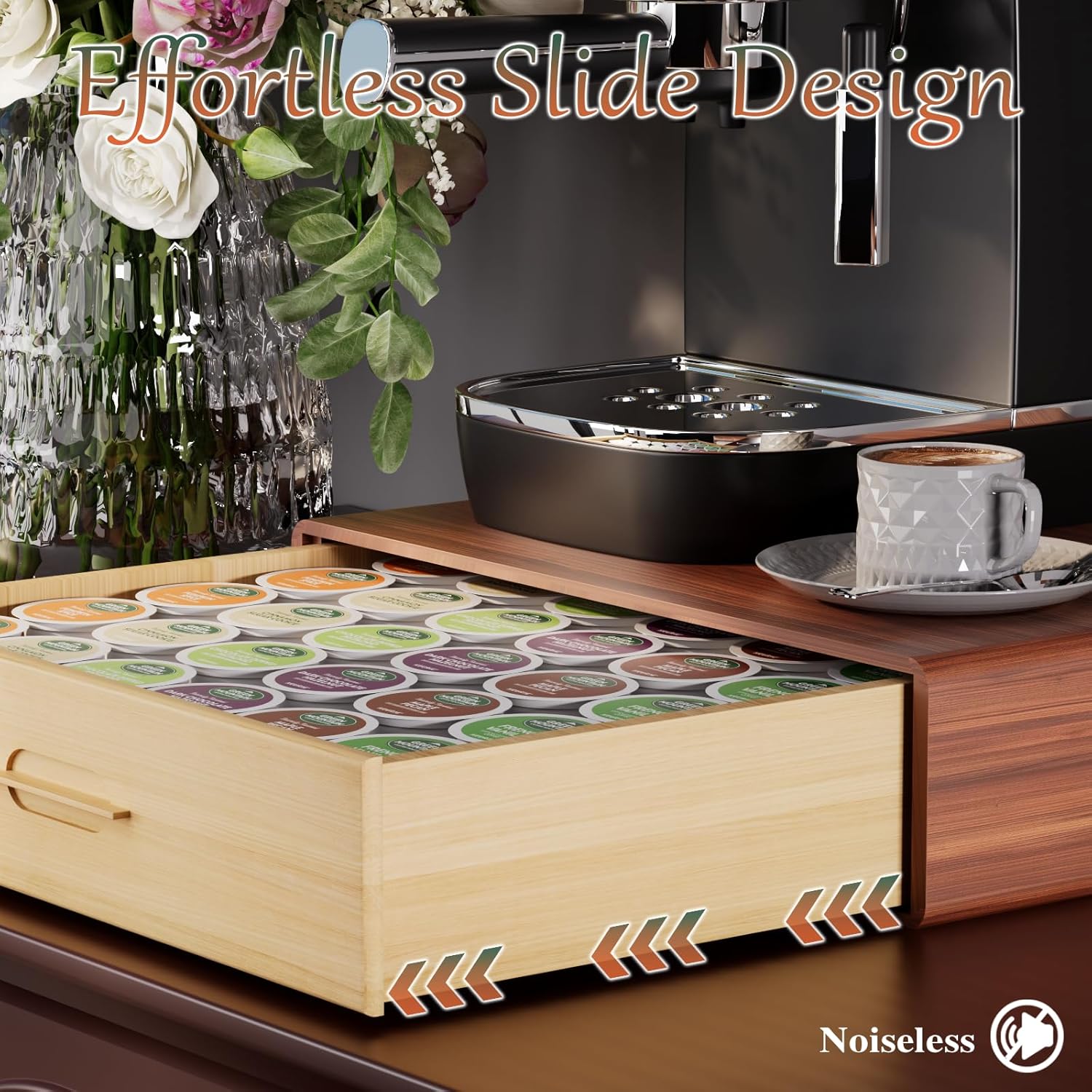 - Generous Storage Space - Allows you to freely store various coffee pods like Nespresso, K-Cups, and tea bags, while the drawer design keeps your items clean and organized.