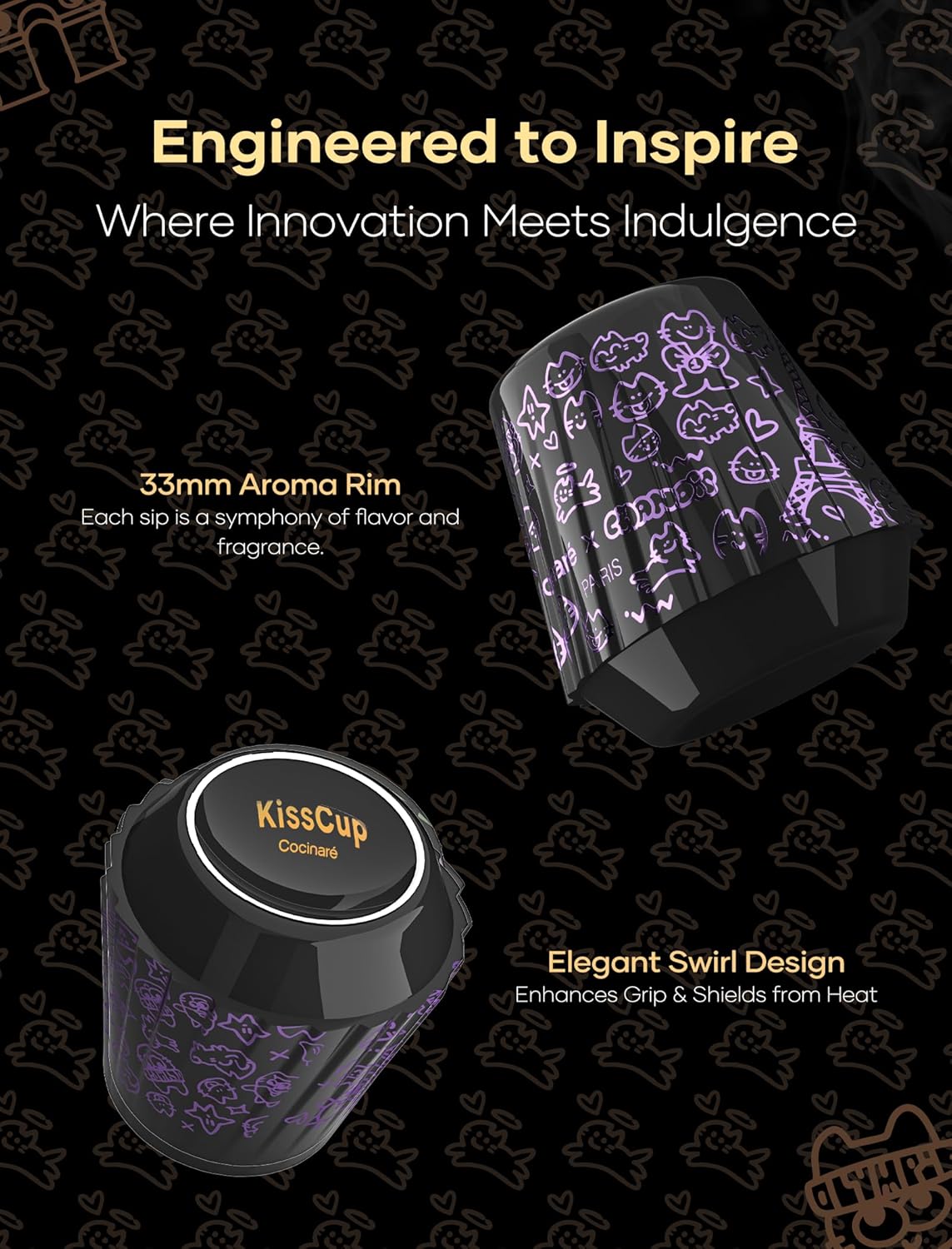 - Expressive Design, Intimate Feel: Hand-drawn feline motifs and a deep black-purple palette turn every cup into a personal gallery moment.