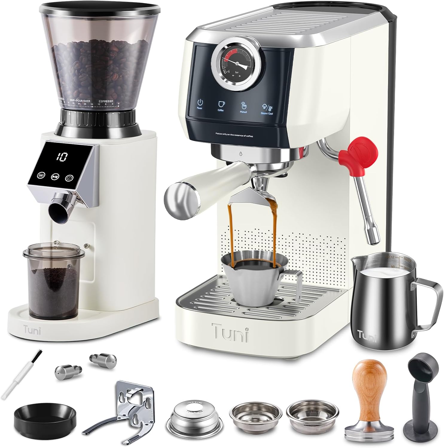 Tuni E2 𝑬𝒔𝒑𝒓𝒆𝒔𝒔𝒐 𝑴𝒂𝒄𝒉𝒊𝒏𝒆 with G1 𝑪𝒐𝒏𝒊𝒄𝒂𝒍 𝑪𝒐𝒇𝒇𝒆𝒆 𝑮𝒓𝒊𝒏𝒅𝒆𝒓 Combo Set | 20Bar Dual Boiler Coffee Maker | 48 Grind Settings | Professional Home Barista Kit