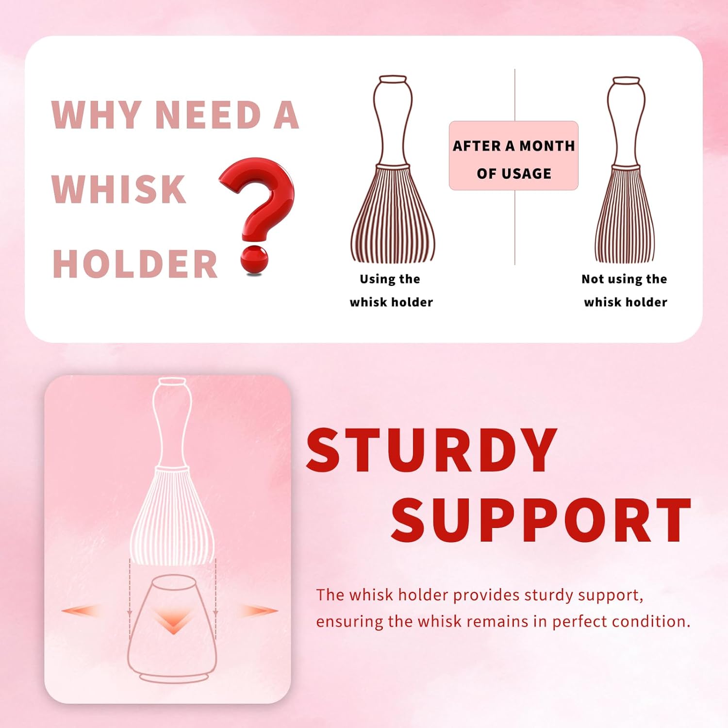 - Feature - The matcha tea whisk holder protects the shape and integrity of the bamboo whisk without worrying about its bristles bending. The middle is hollow, which helps the drying process and prevents scale accumulation.