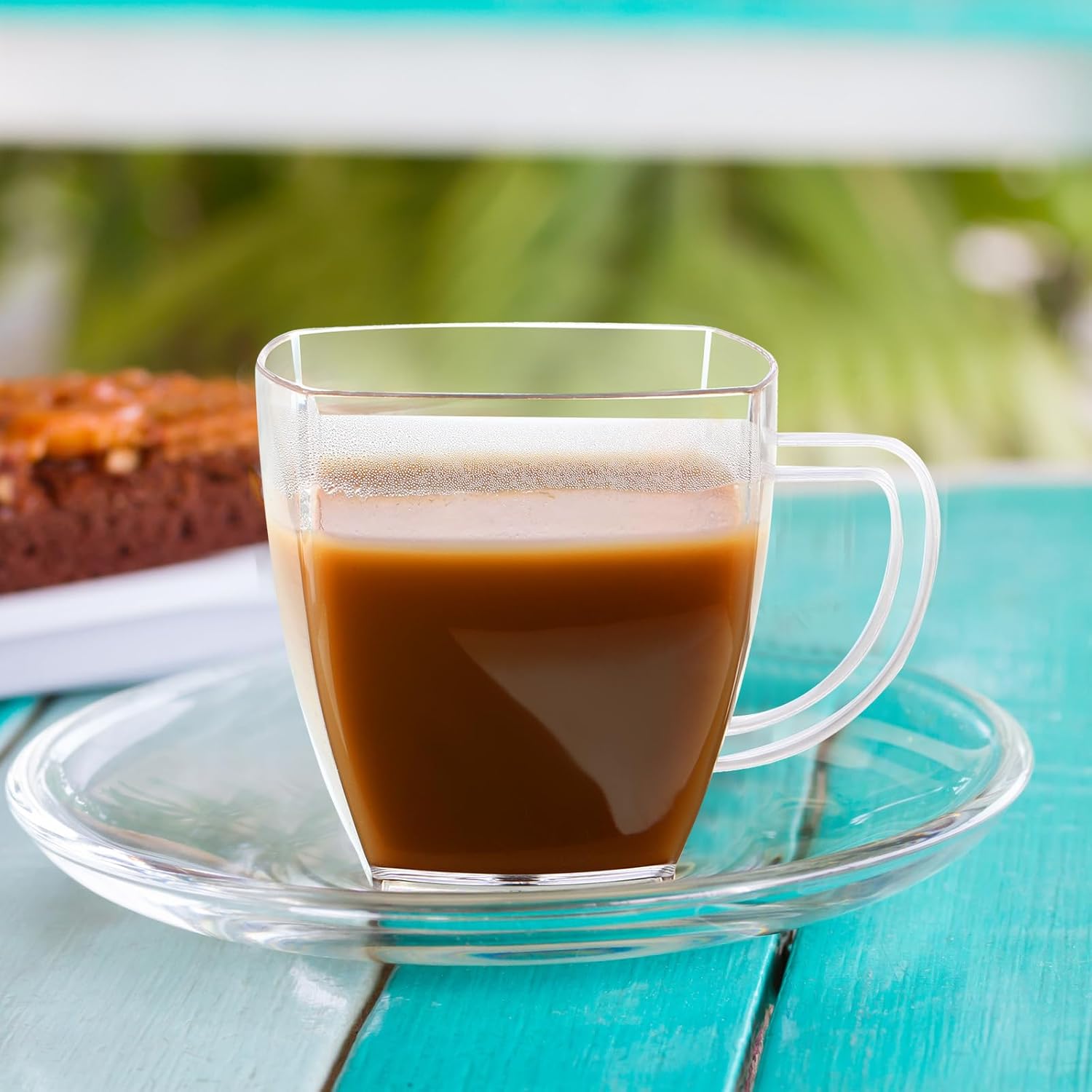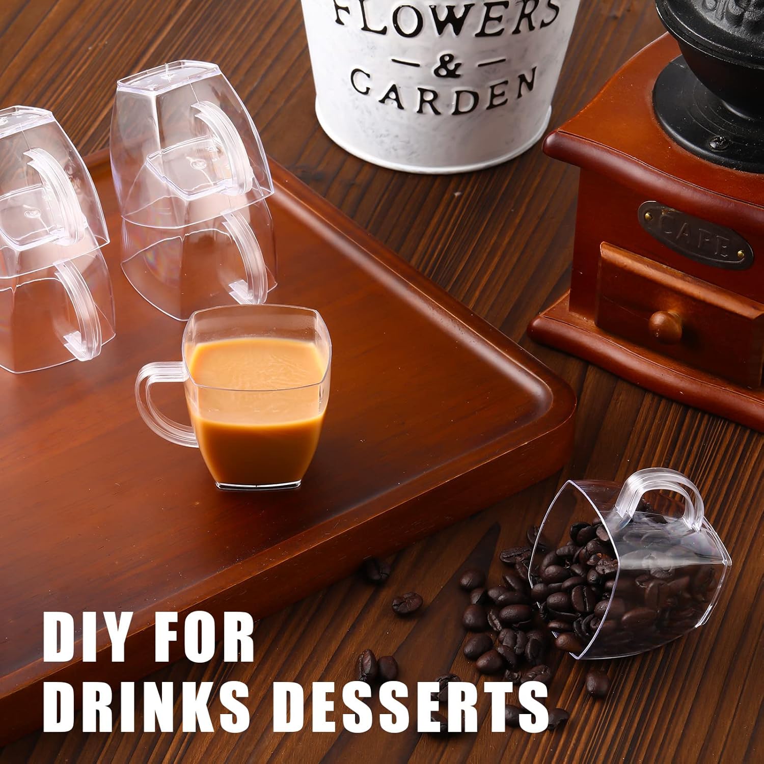 Amyhill 50 Pcs Disposable Tea Cups Mini Plastic Tea Cup Bulk with Handle Hard Plastic Coffee Mug Disposable Square Espresso Mug for Party Catering (Transparent)