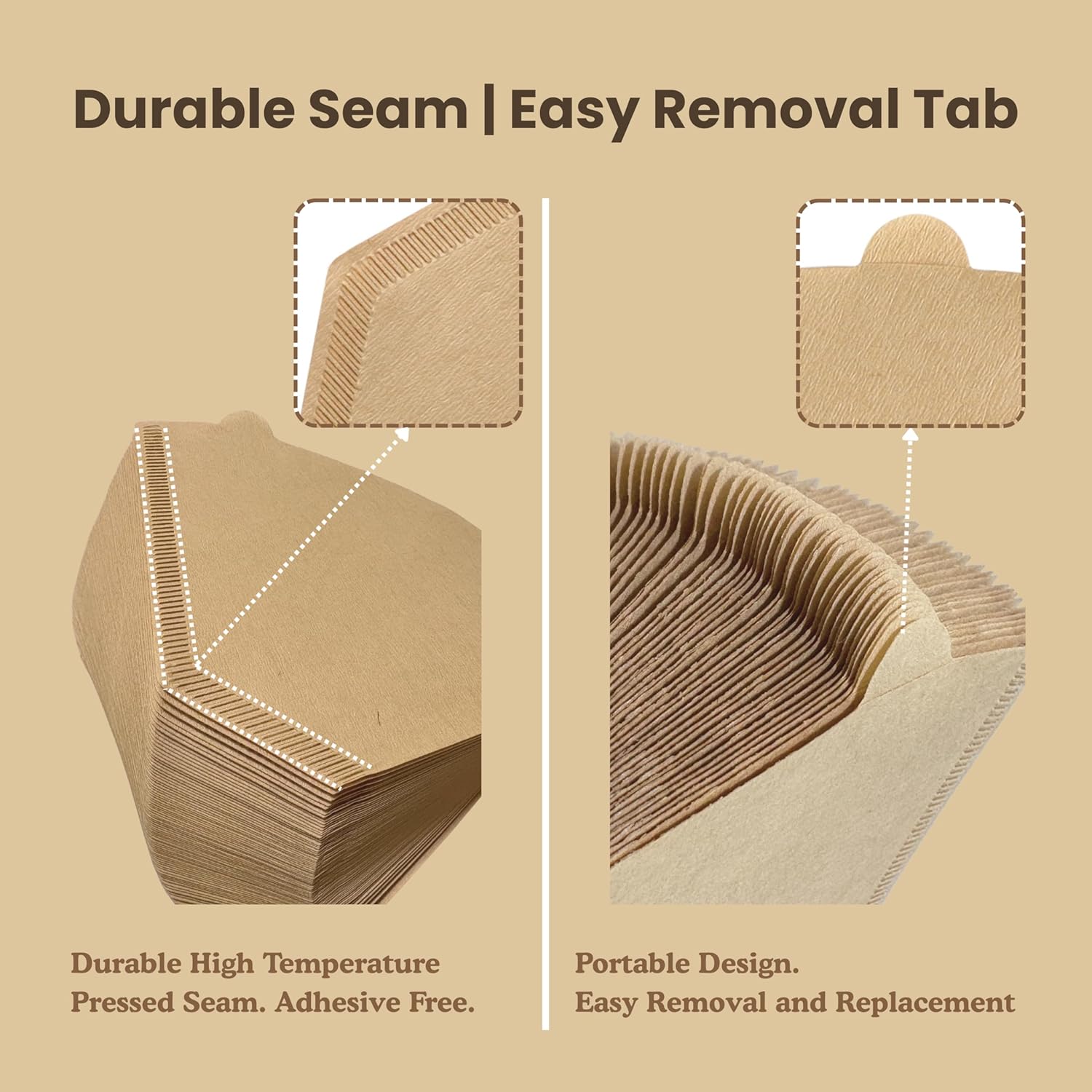 - EASY TO USE & CLEAN: Please fold the coffee filter paper before use, then placed in the filter cup, pre-wet with hot water to optimize fit. It holds grounds securely—less mess in your machine and extends lifespan. Moderate thickness make it easy to be removed and not easy to tear.