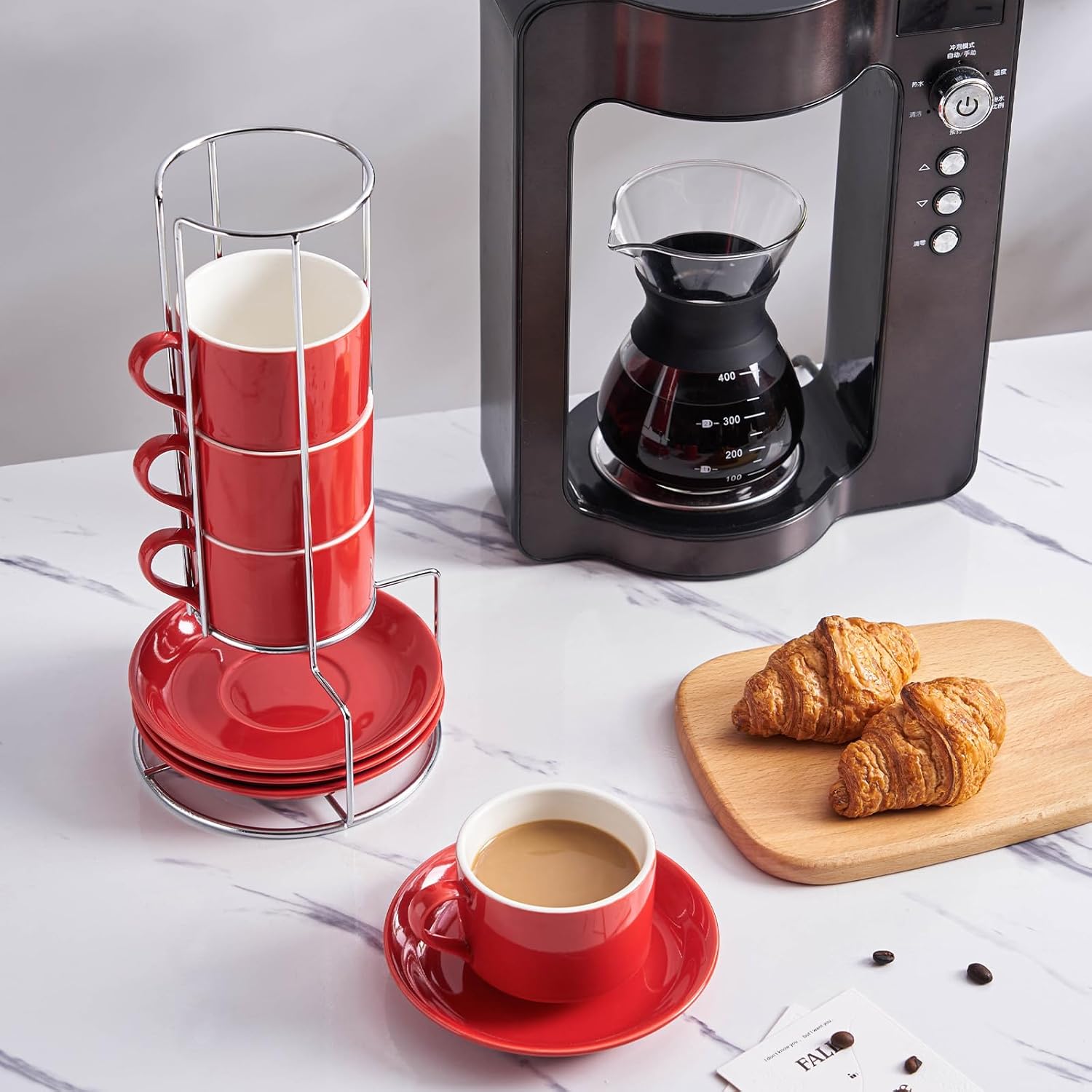- This exquisite coffee cup set, complete with a stand, is irresistible for coffee lovers. It’s the perfect gift for friends and family on occasions like souvenirs, housewarmings, wedding parties, Christmas, and New Year’s celebrations.