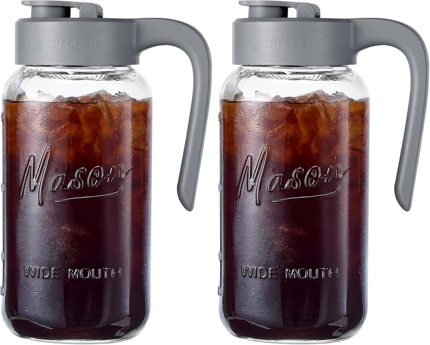 - Versatile Usage: Perfect as a sun tea pitcher, cold brew pitcher, ice tea brewing pitcher, and more. This 2 quart (64 oz) mason jar pitcher is designed to meet all your beverage storage needs.