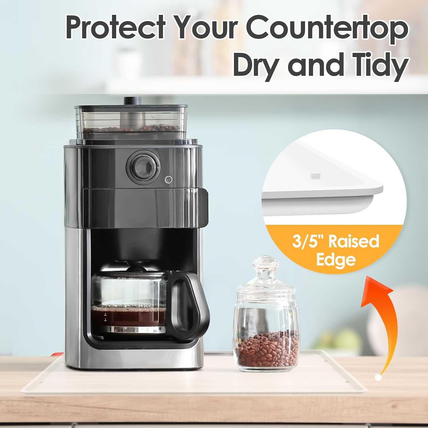 - 100% Water Does Not Flow Out: The coffee maker mat is built with 3/5" raised edge, like a tray and it can contain any liquid spills from the coffee maker. The premium material not only protect your countertop from scratches, especially protect the wood countertop, but also keep your your countertop tidy, clean.