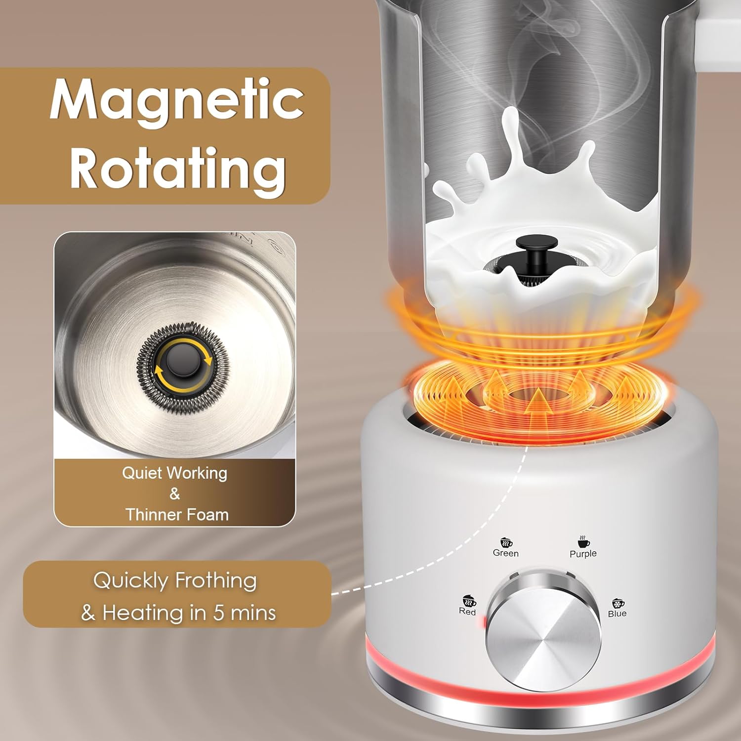 Milk Frother and Steamer, 16.9 OZ Milk Frother for Coffee, 4 in 1 Frother Separable Easy to Use and Clean, Durable Safe Silent Working for Coffee, Latte, Cappuccino Hot Chocolate, White
