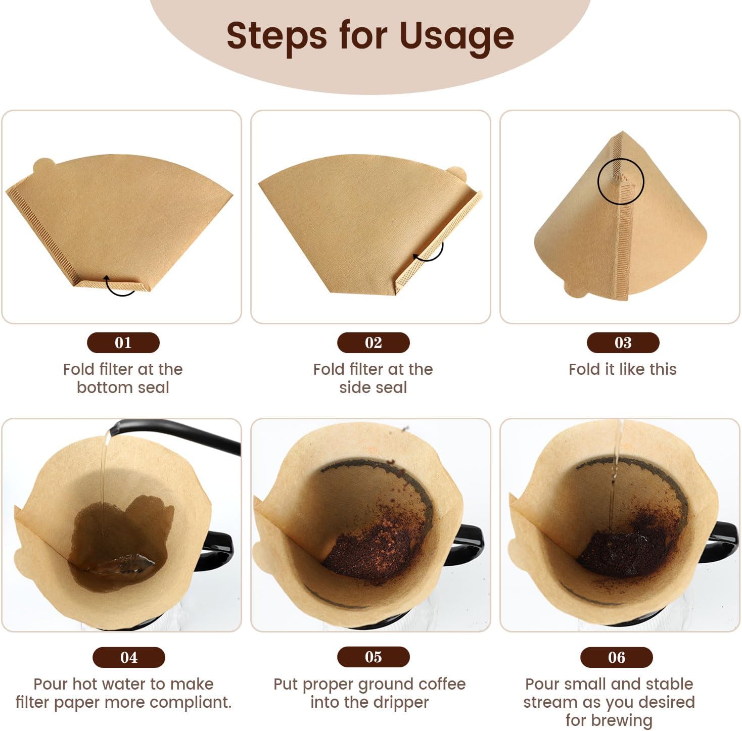 - [High Quality]: Our coffee filter is 100% biodegradable natural paper. It has four advantages: no log bleaching, no smell, no adhesive, and no residue. It can reduce the damage to the original taste of coffee, health, and hygiene. And it will be safer and more secure when you use it