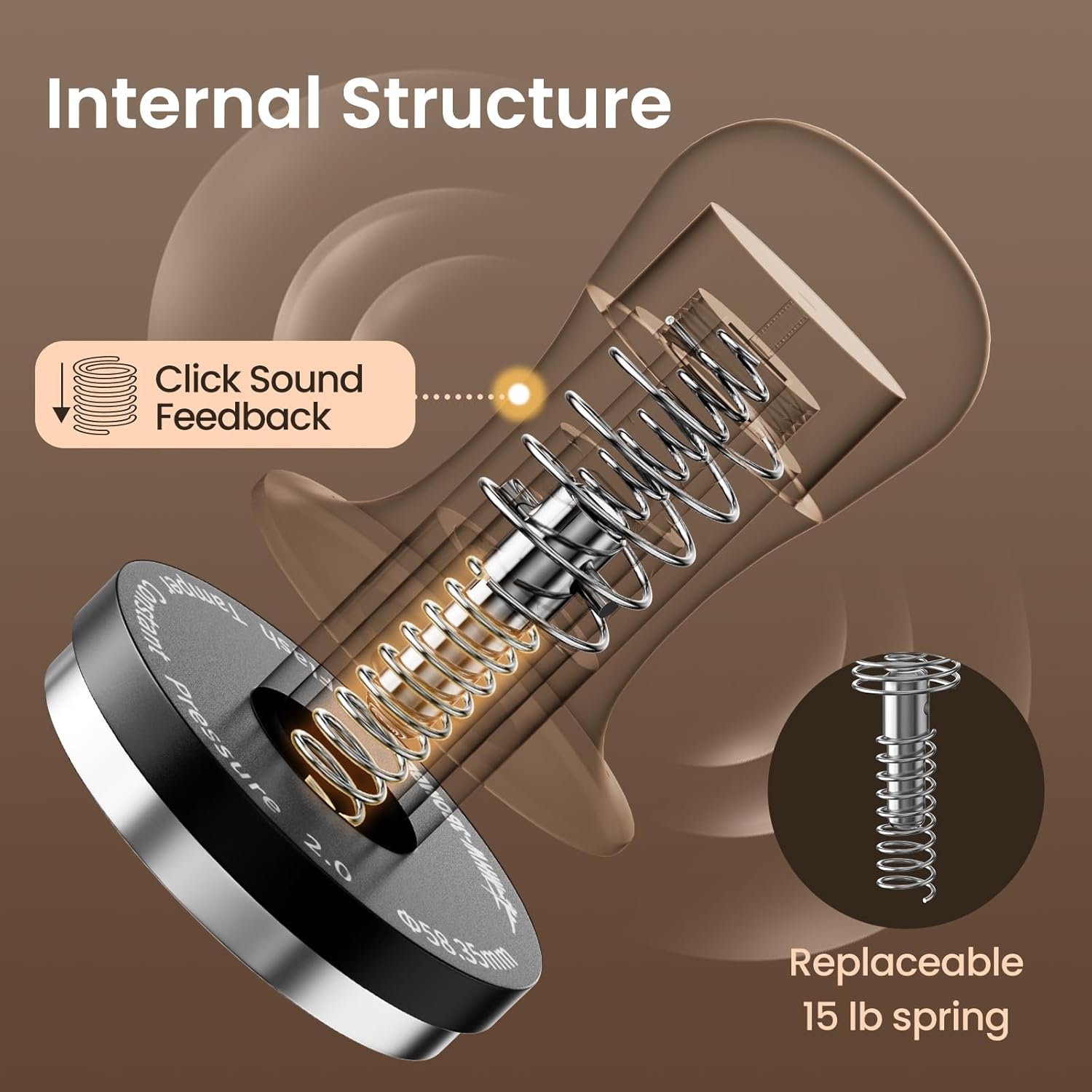 - Special Sound Feedback: There's a solid "click" when you hit 30lbs. So you will not have the puzzle of using other tamper tool espresso: "Do I exert 30lbs of pressure? And when should I stop tamping powder?"