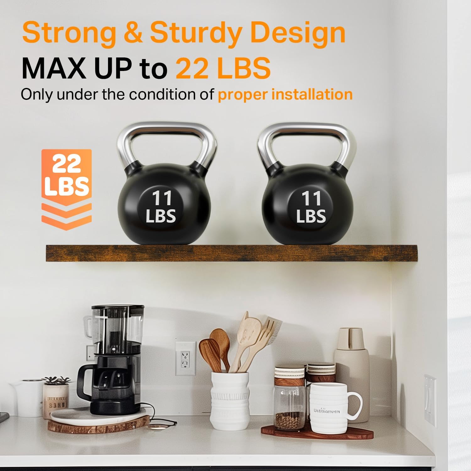 BAYKA Floating Shelves, 22.5 inch Rustic Wood Wall Mounted Shelves for Bedroom, Living Room, Kitchen & Office, Hanging Display Shelf with 22 lbs Capacity (Rustic Brown,Set of 2)