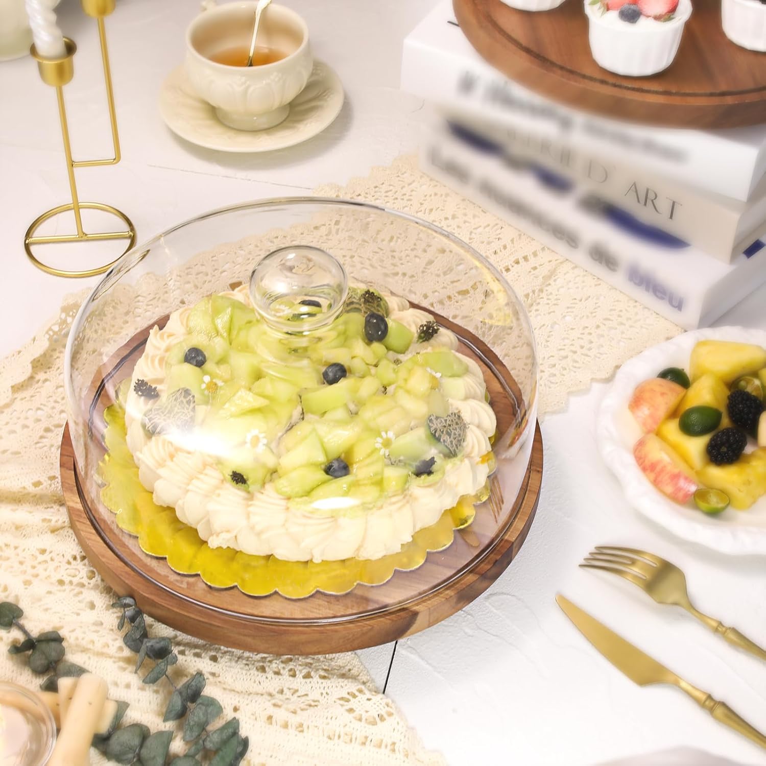 - 【2CM Acacia Wood】Premium 2cm-thick acacia wood cake plate resists warping, paired with a 360° rotating wooden foot. Safely hold heavy cakes or charcuterie. Cake stand with lid combines rustic charm and modern durability for kitchens and events.