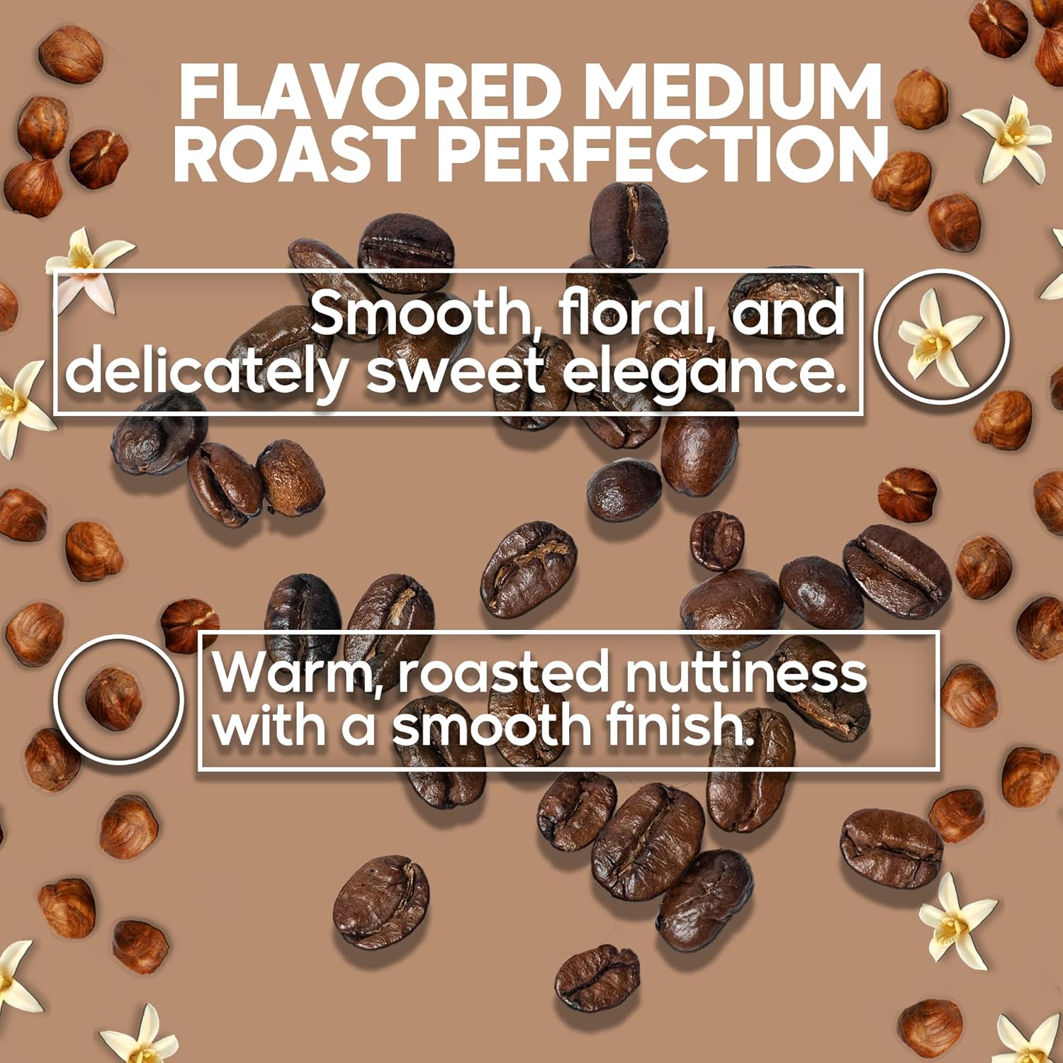 - Irresistible Vanilla Hazelnut Flavor – Experience the perfect harmony of smooth vanilla and rich, toasted hazelnut in every sip. These whole Arabica beans deliver a naturally sweet, creamy taste with a buttery hazelnut finish, creating a truly indulgent coffee experience.