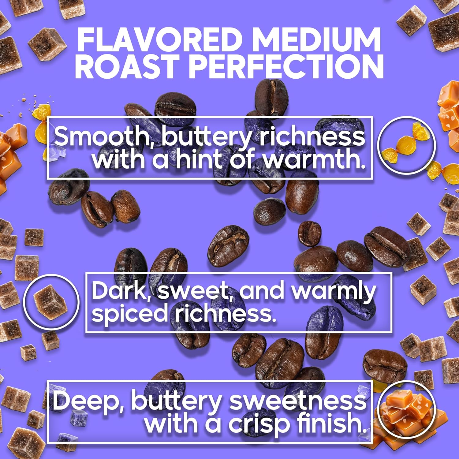 - Bold & Indulgent Flavor – Enjoy the rich, buttery notes of caramelized butterscotch, smooth vanilla, and a hint of spiced rum, all wrapped in a full-bodied, medium roast that delivers a warm, toasty finish with every sip.