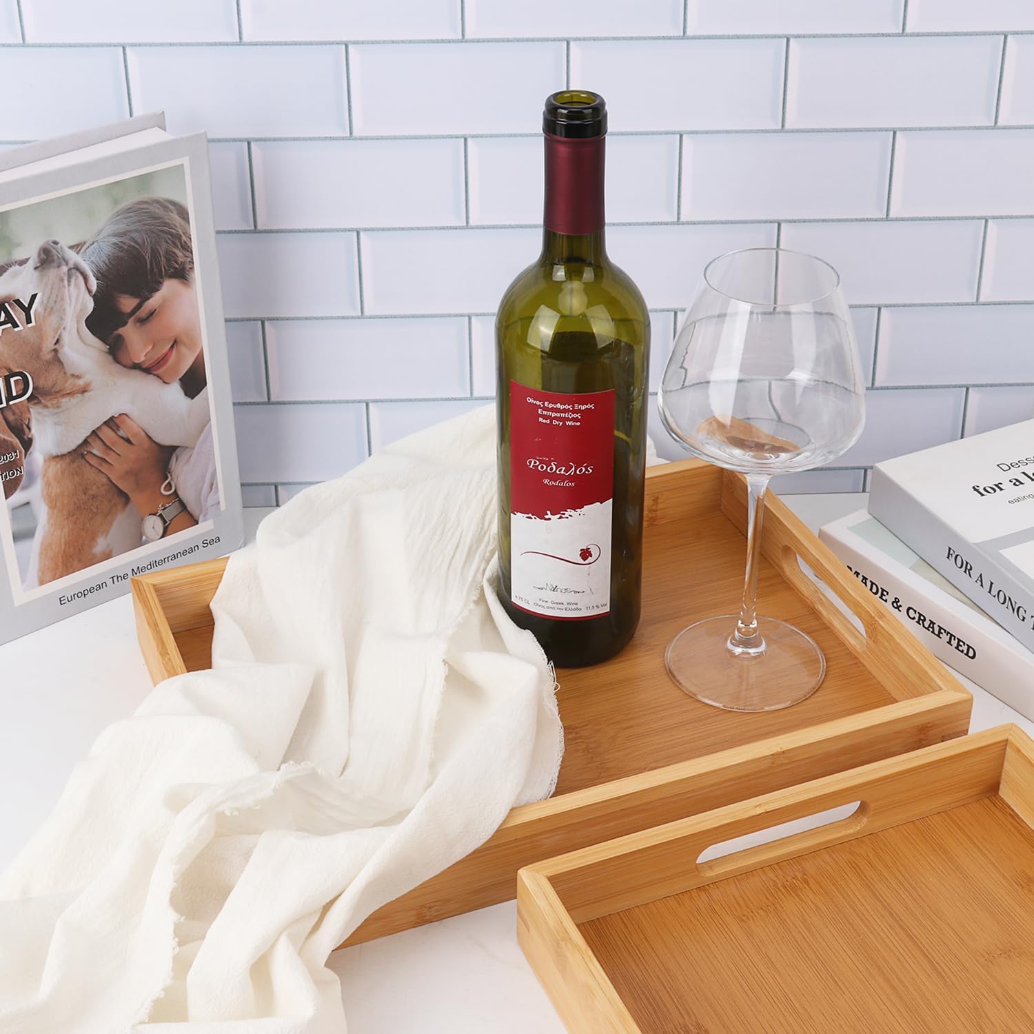 2 Pack Large Bamboo Serving Tray with Handles, 16 x 11.6 Inch and 14 x 10 inch Wooden Dinner Tray, Home Kitchen Breakfast Trays for Living Room Bedroom Kitchen Dinner Table, Picnic