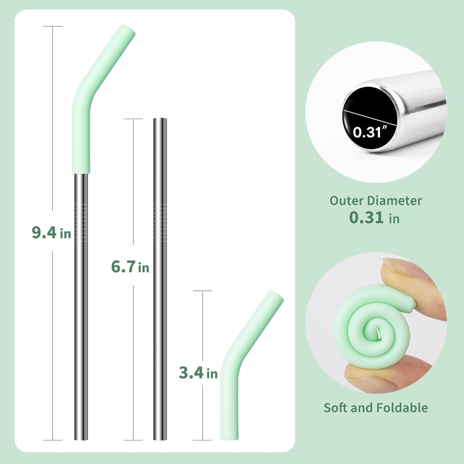 - What's Included:4 × Straight Stainless Steel Straws | 4 × Silicone Tips | 2 × Cleaning Brushes. For any questions, contact us—we’ll resolve them promptly!