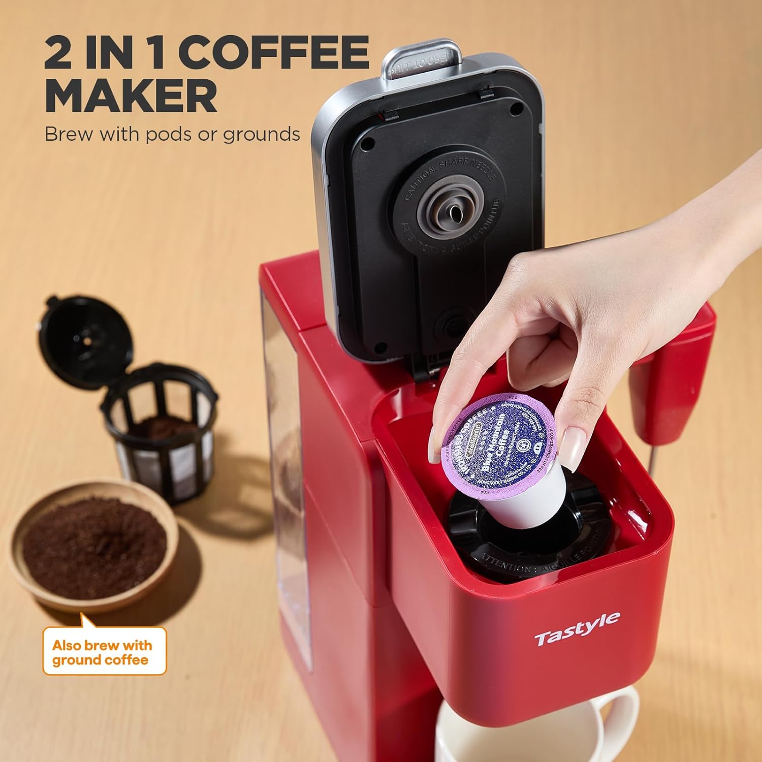 - BREW WITH PODS OR GROUNDS: This versatile coffee maker supports both pods and grounds with its capsule holder and large reusable ground filter, making it easy to savor your favorite coffee