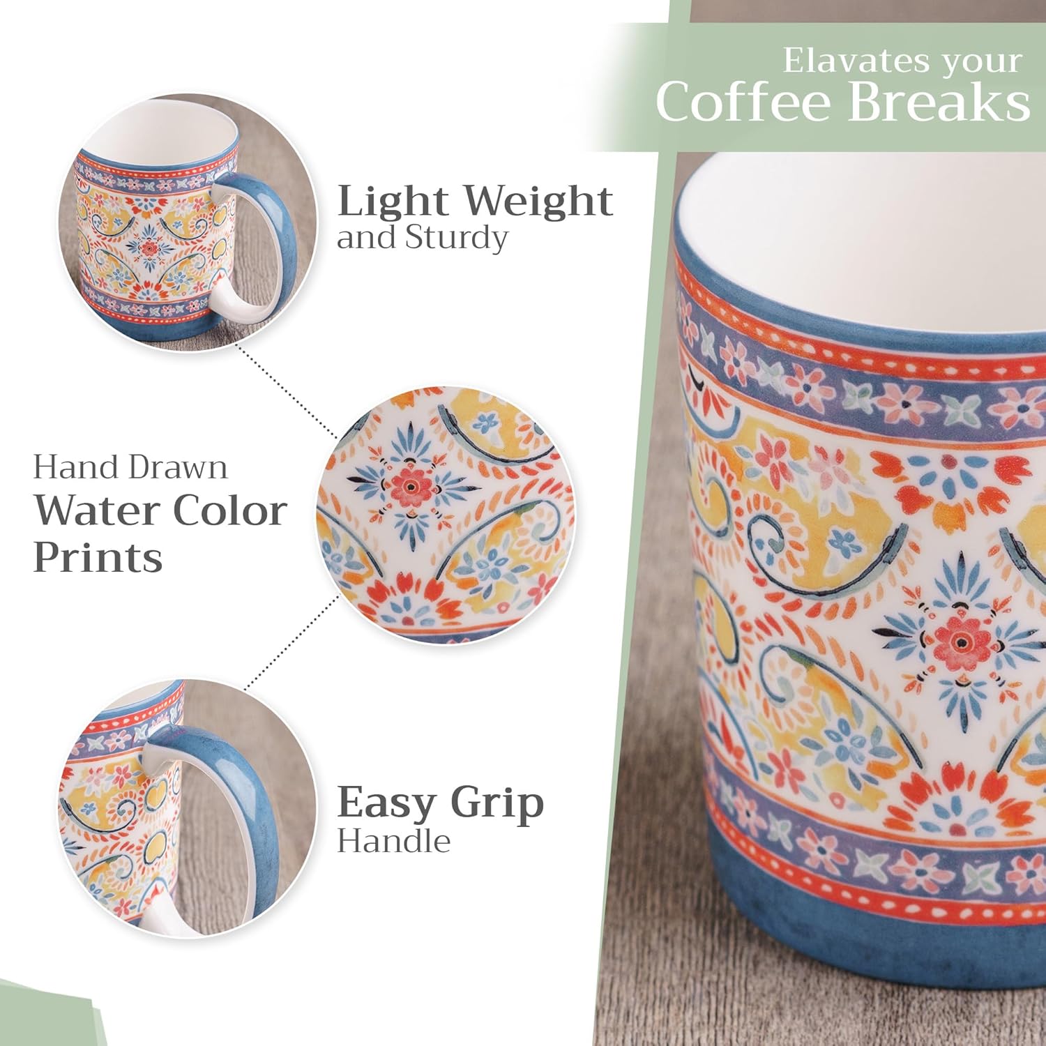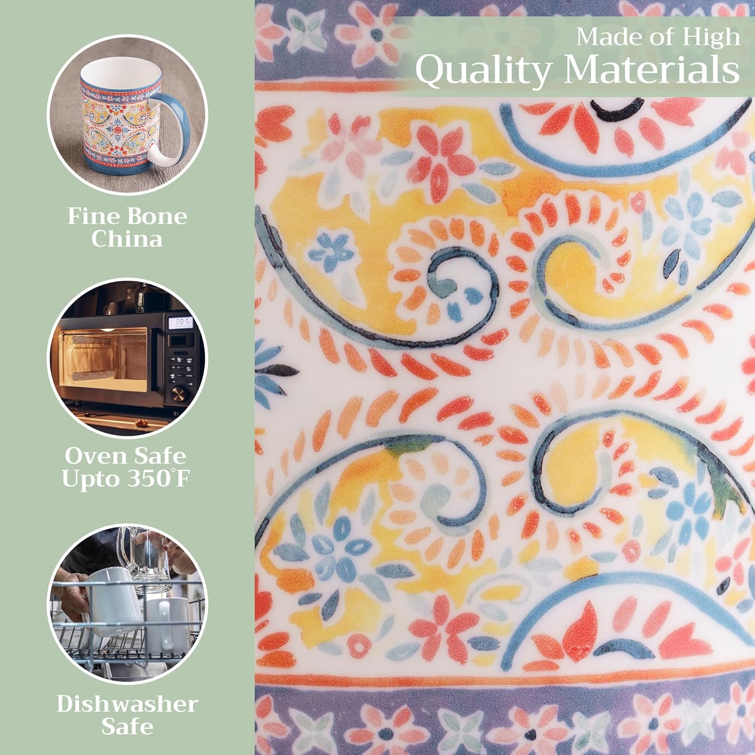 Maison d' Hermine Coffee Mug with Handles Fine Bone China Mugs Pack of One Tea Cups for Hot Beverages Cappuccino Latte Home Restaurant Office Perfect for Gift (Indian Floral - Butta, 15 Ounce)