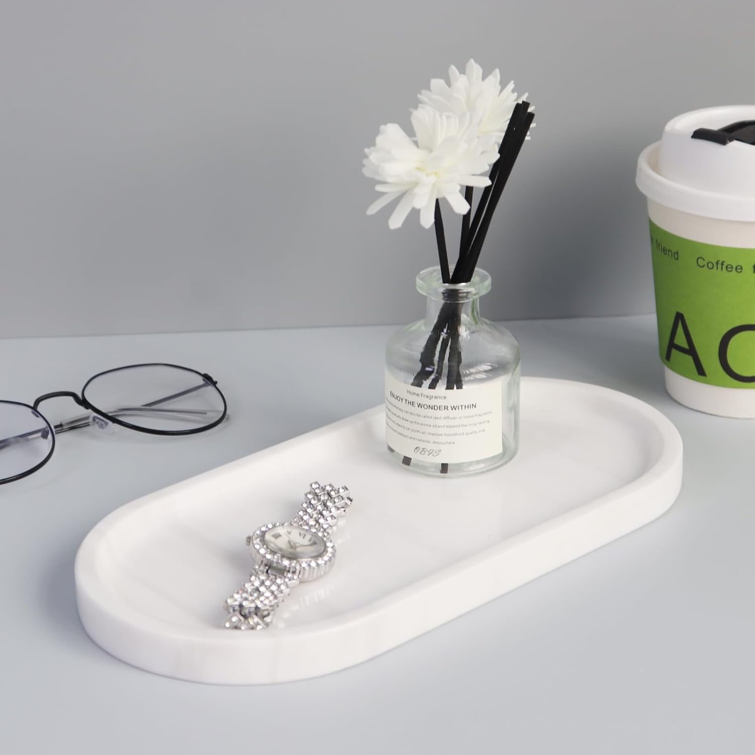 - This makeup tray organizer tray is easy to maintain and can be wiped directly with a damp cloth or paper towel. The below of bathroom tray is hard, durable and easy to clean.it’s also a reliable helper for different occasions like Christmas, birthday, wedding, baby shower, housewarming and other parties.